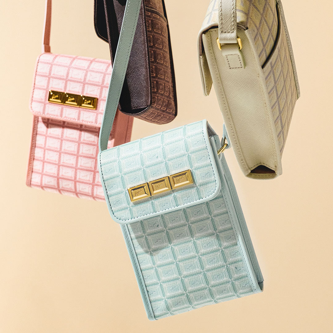 This smart mini bag is inspired by a bar of rich chocolate and handcrafted in Japan with playful elegance. Lightweight yet durable, it’s made from stain-resistant PVC-coated canvas and finished with an adjustable genuine leather strap.