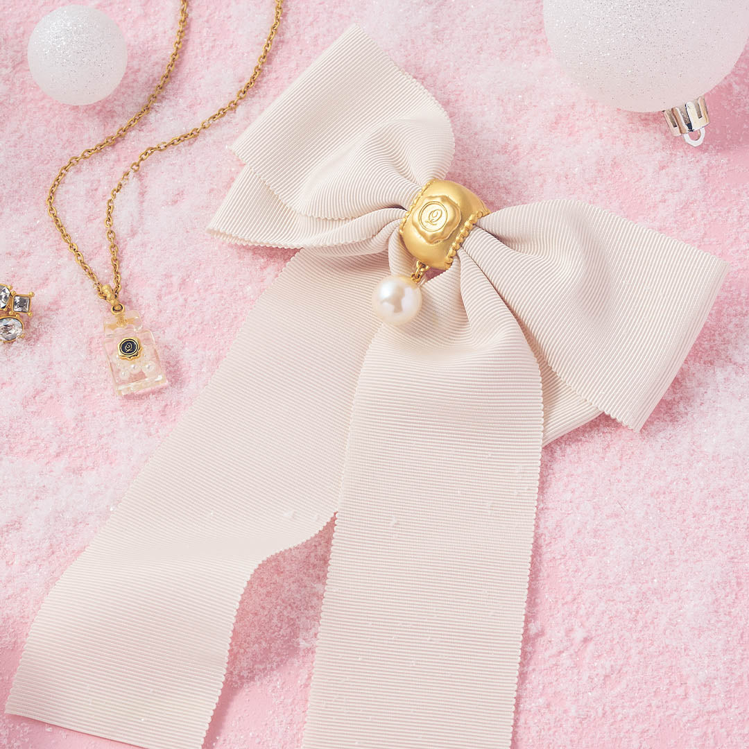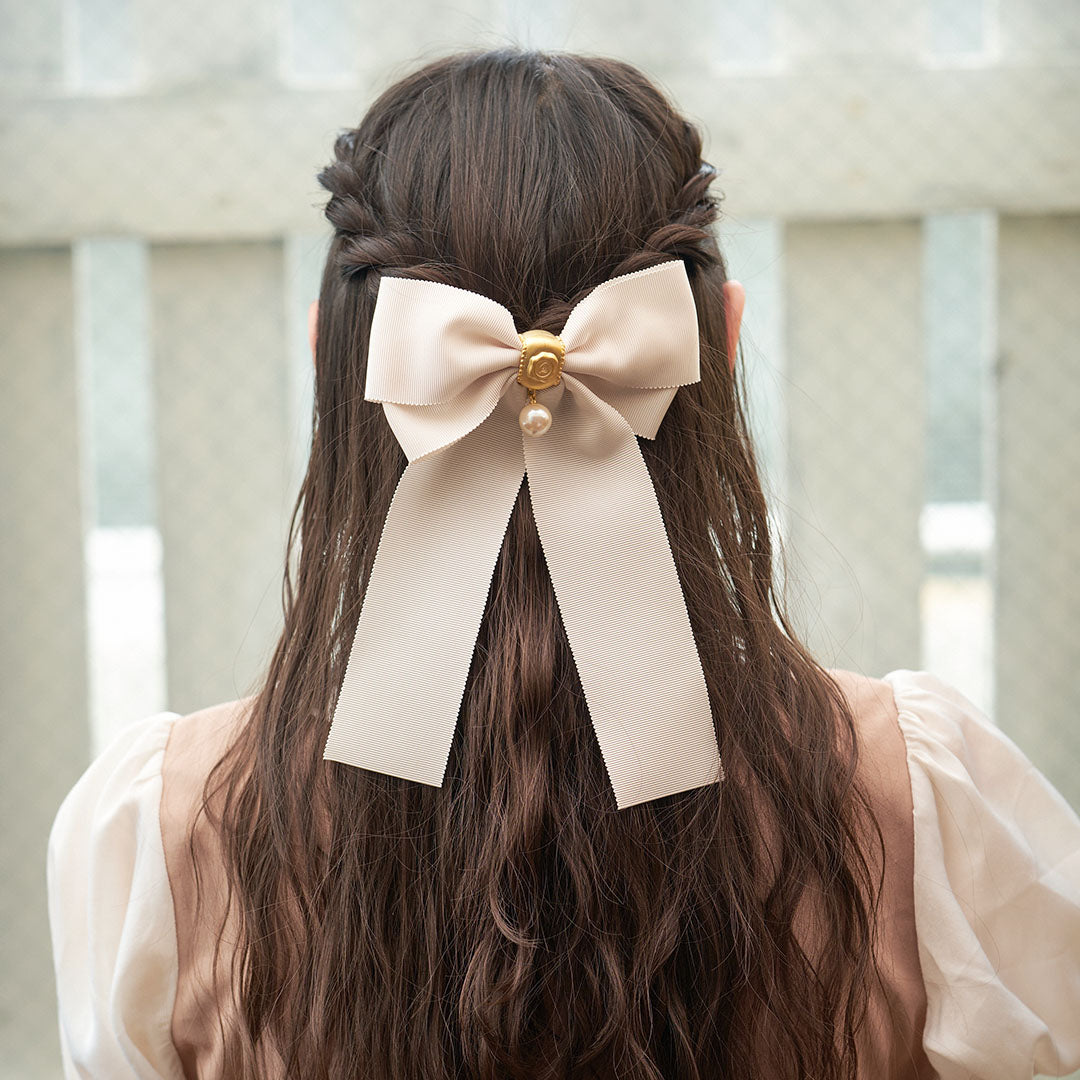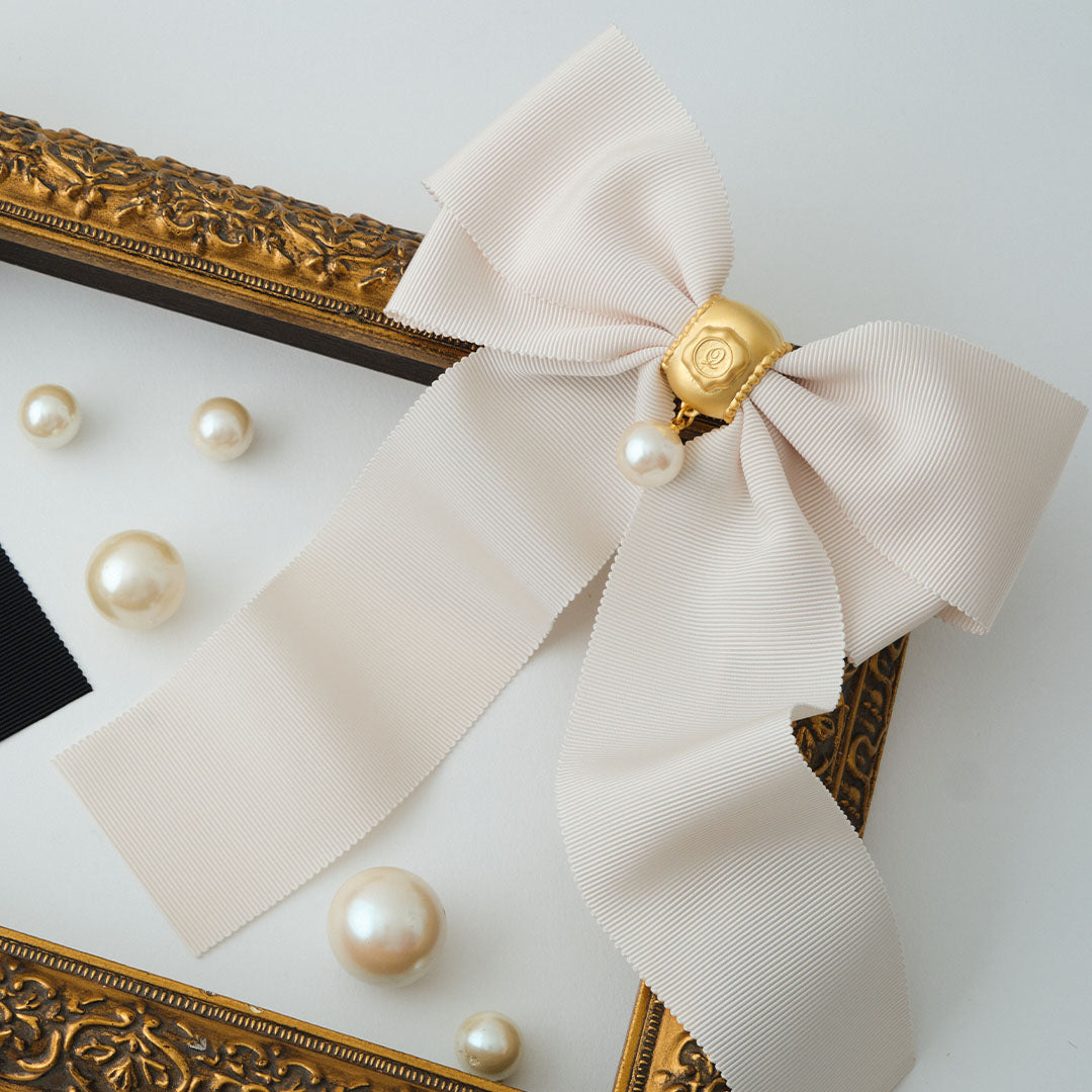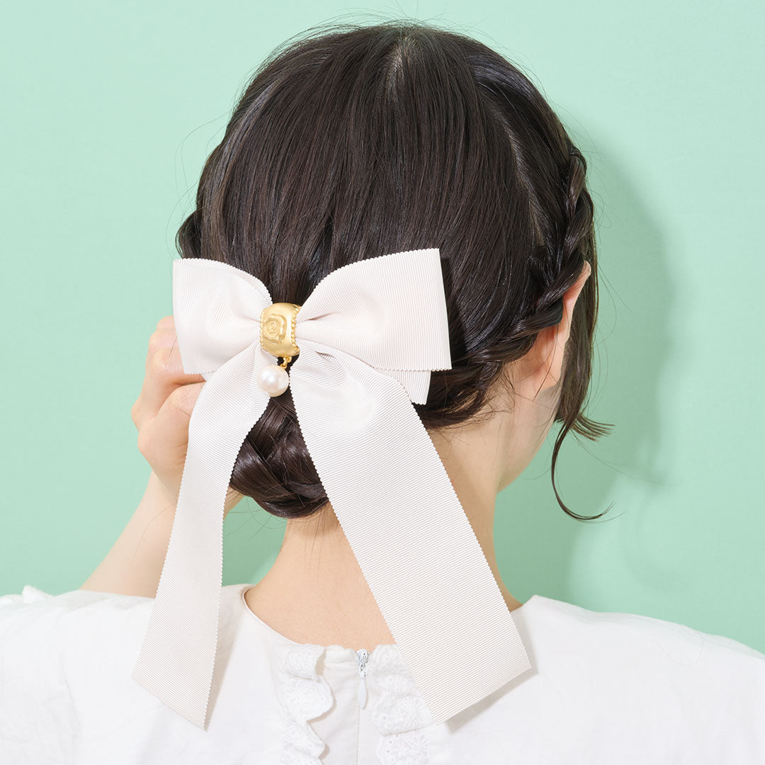 Grosgrain Ribbon Pearl Barrette (Off-White)【Japan Jewelry】