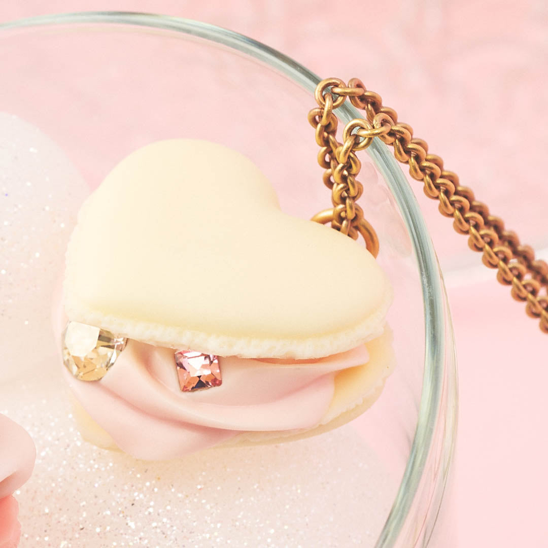 Topped with a sparkling heart-shaped crystal, it’s a macaron full of love and whimsy.