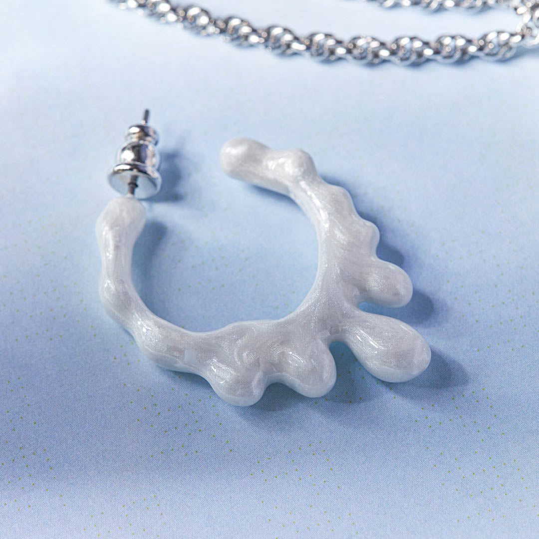 Melty Melt Hoop Pierced Earring (White Marble / Single)【Japan Jewelry】