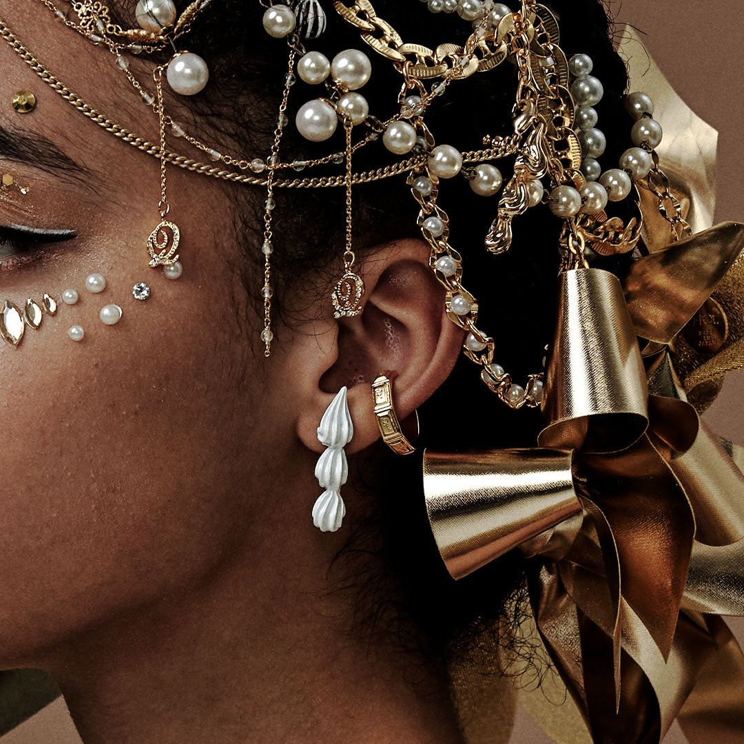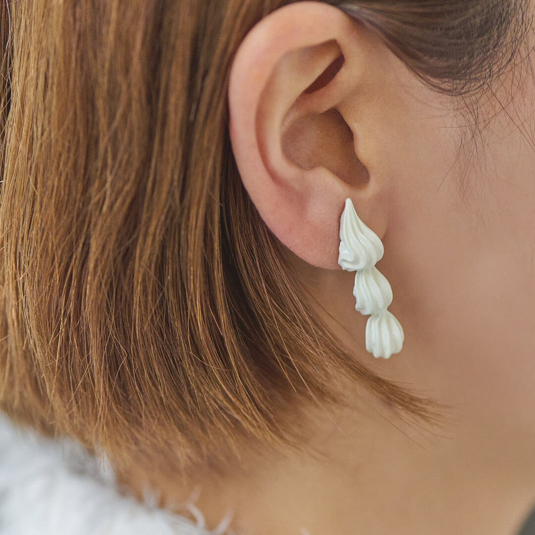 With a lustrous texture and a fine size perfect for daily wear, this elegant whipped cream design is tailored for sophisticated styles. The whimsical and playful earring that looks as if fluffy whipped cream has been artfully piped, bringing joy with its charmingly unique design.