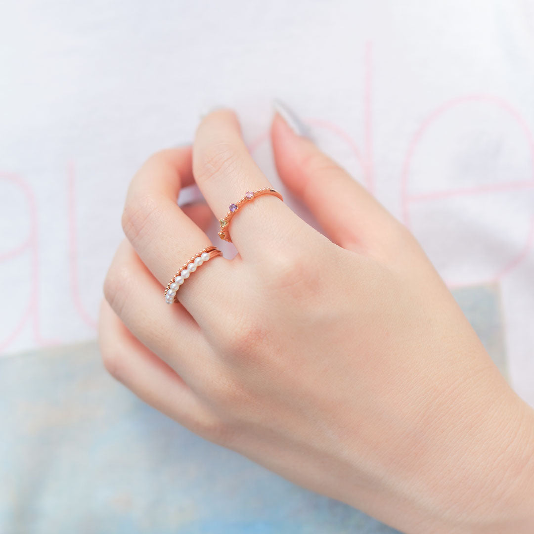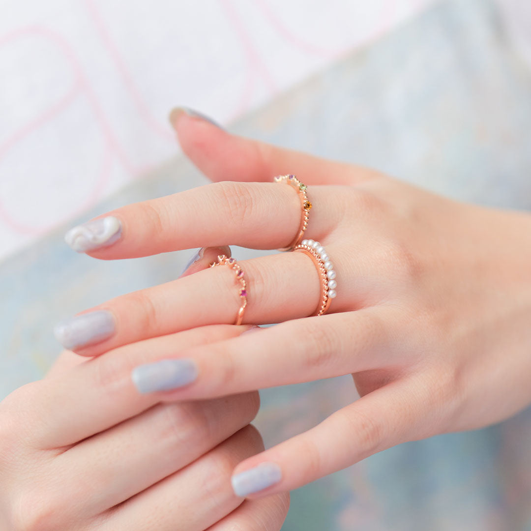 A collection give you a positive and happy mood. The rings of this collection can be worn individually or combined to create a luxurious fruit-inspired cake. Enjoy the variety and customization options with this unique accessory. Perfect for the fashion-forward and creative individual.