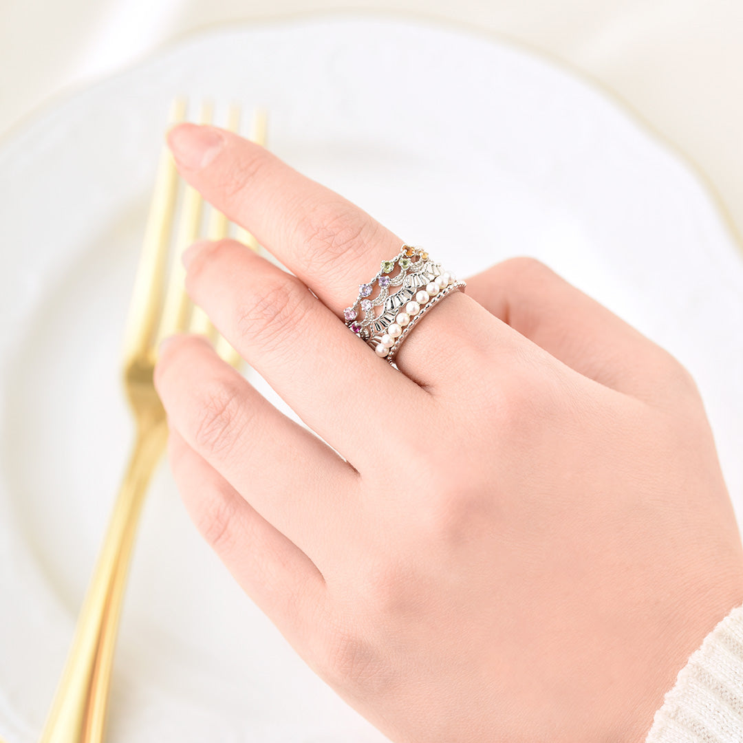 A collection give you a positive and happy mood. The rings of this collection can be worn individually or combined to create a luxurious fruit-inspired cake. Enjoy the variety and customization options with this unique accessory. Perfect for the fashion-forward and creative individual.