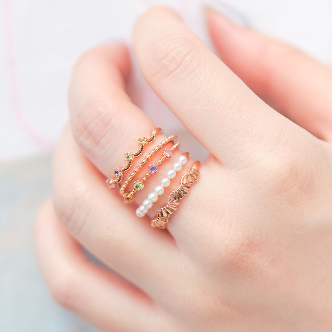A collection give you a positive and happy mood. The rings of this collection can be worn individually or combined to create a luxurious fruit-inspired cake. Enjoy the variety and customization options with this unique accessory. Perfect for the fashion-forward and creative individual.