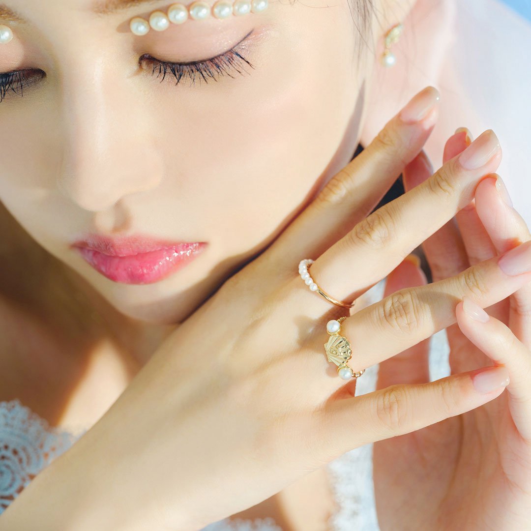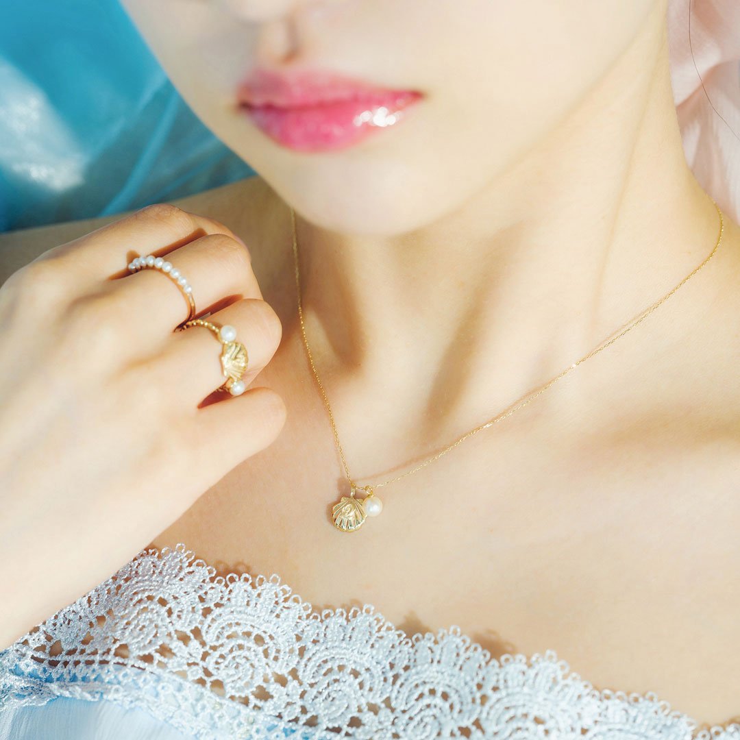 Silky white, gentle glitter, pearls always look so adorable. Attached with the pearl, exquisite shell is also deserve a look. For you who yearn for a charming woman with a core, while being somewhat ephemeral like a mermaid. Mini-sized but beautiful with delicate details. Made in Japan and each piece is carefully finished.