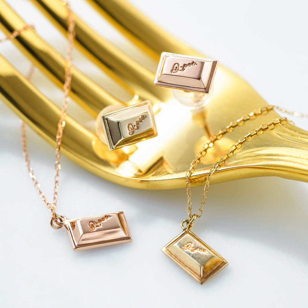 A piece of chocolate, Q-pot.'s iconic motif, turns into a mini sized jewelry. Simple yet unique that is prefect for every occasion. Made in Japan and each piece is carefully finished.