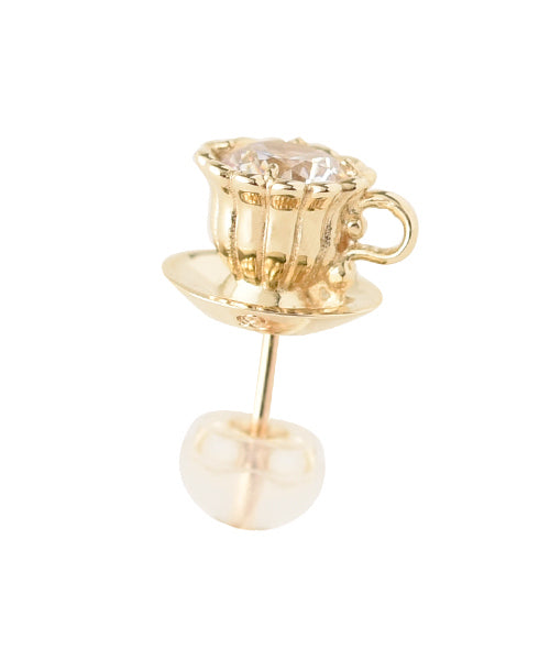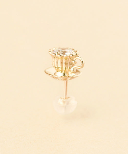 【10K Yellow Gold】Tea Cup Pierced Earring (Single)【Japan Jewelry】