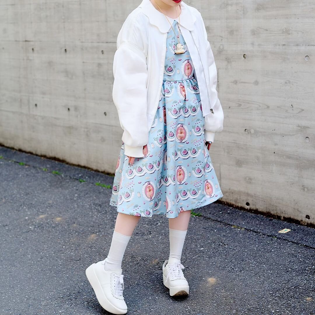 Poodle Cake Puff Sleeve Dress (Mint)【Japan Jewelry】