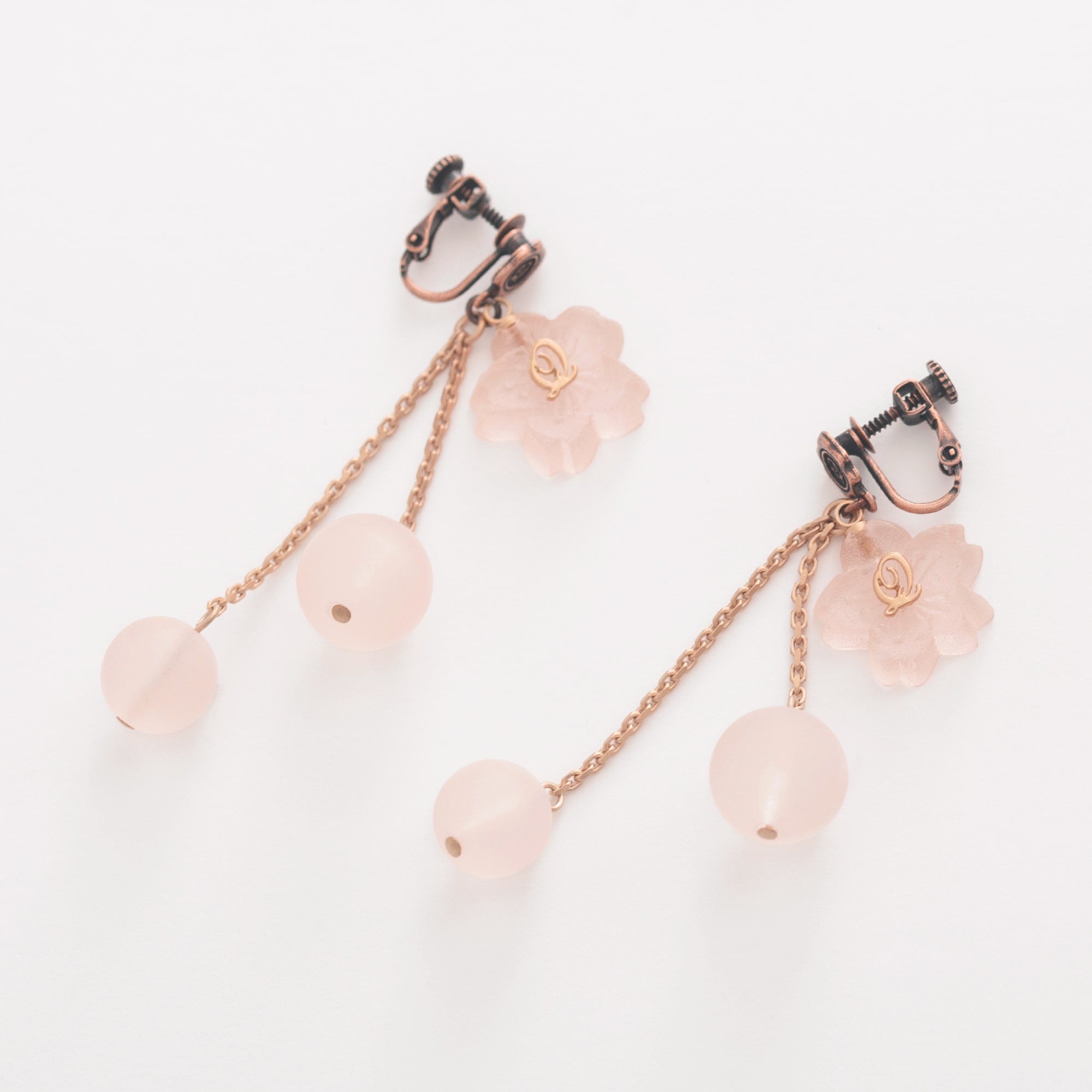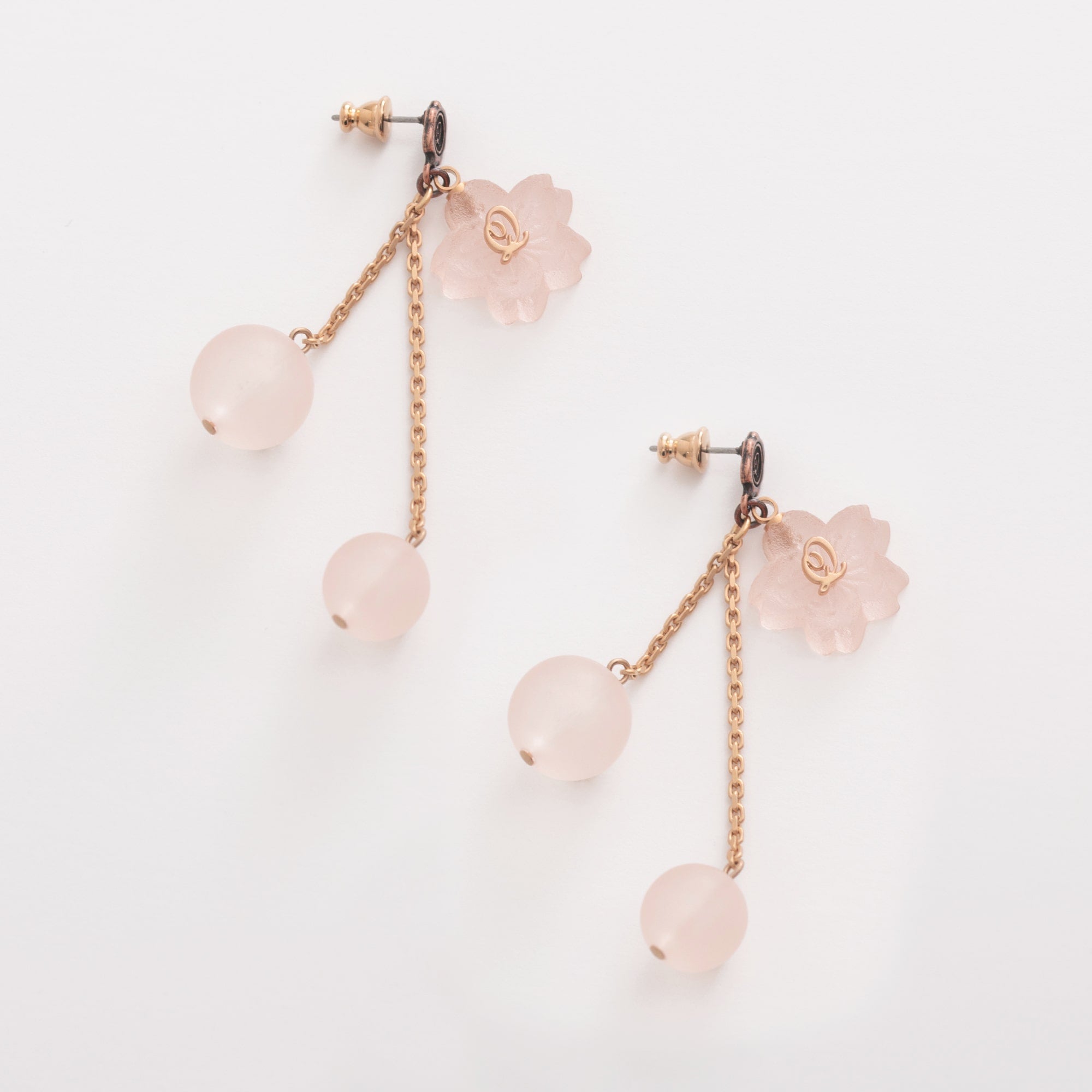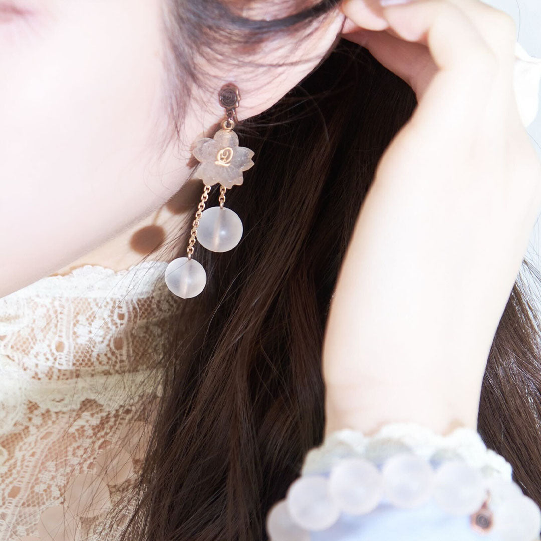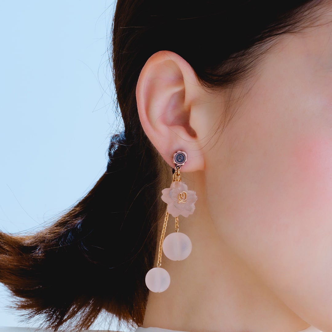 The earrings are delicate with translucent spheres shimmer under the Sakura Wasanbon. Made in Japan and carefully finished by craftsmen.