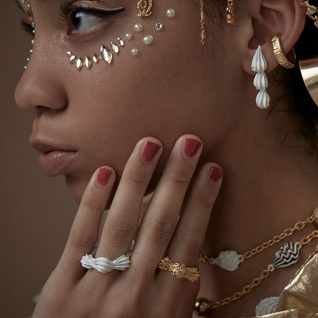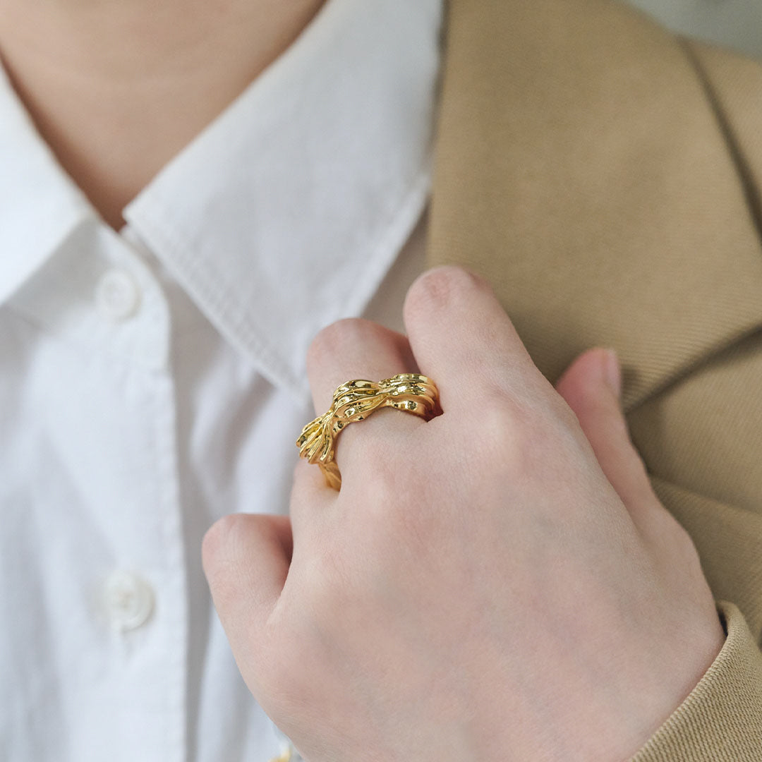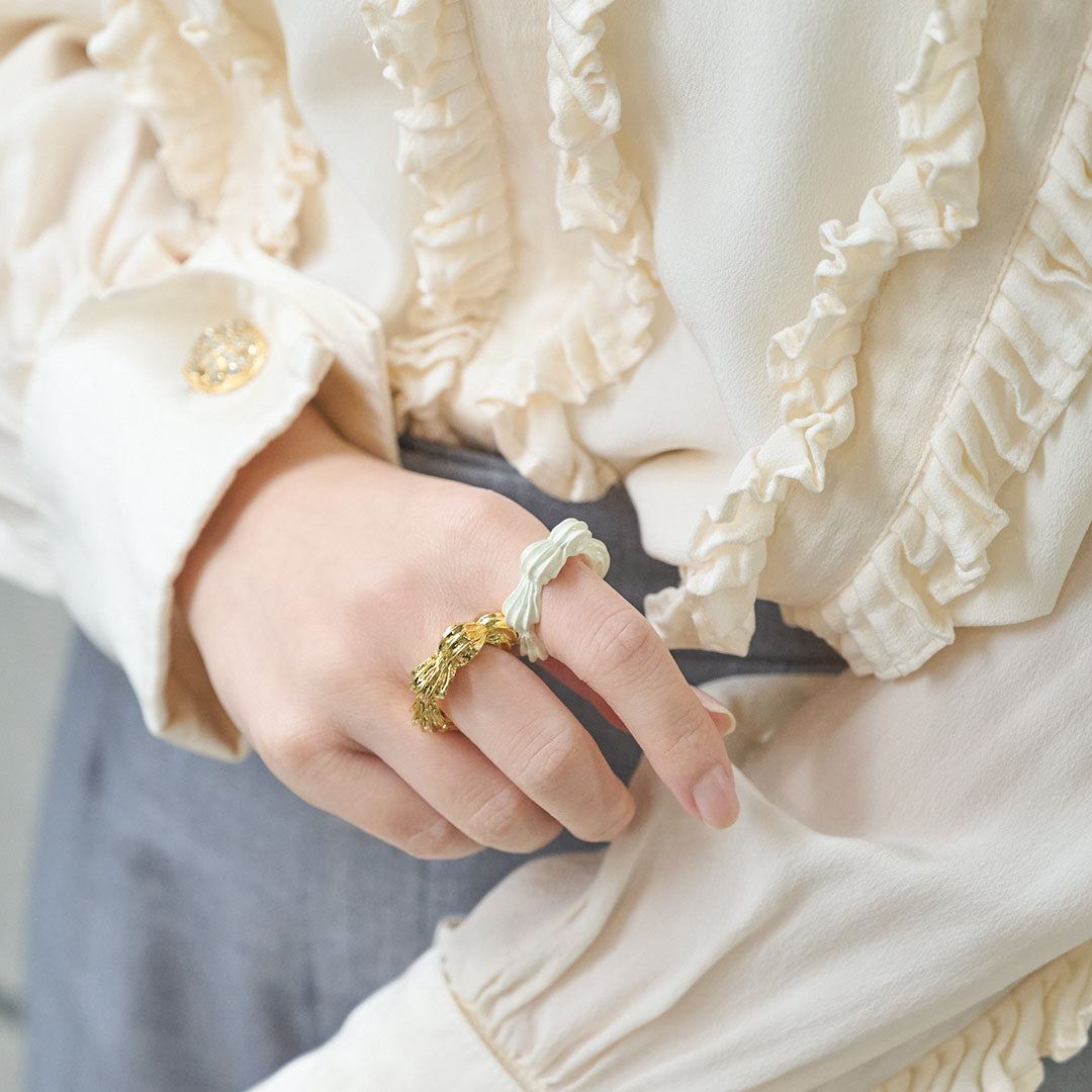 With a lustrous texture and a fine size perfect for daily wear, this elegant whipped cream design is tailored for sophisticated styles. The whimsical and playful ring that looks as if fluffy whipped cream has been artfully piped, bringing joy with its charmingly unique design.