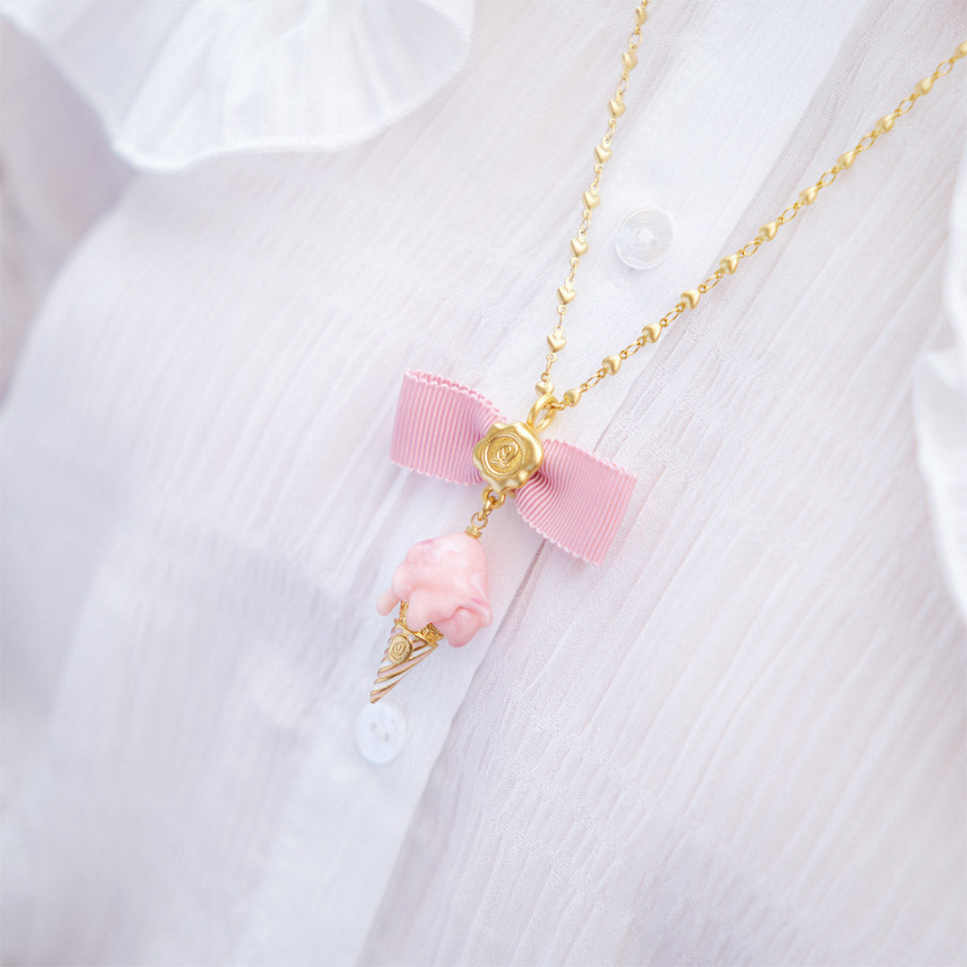 Melty Strawberry Gelato Ribbon Necklace【Japan Jewelry】