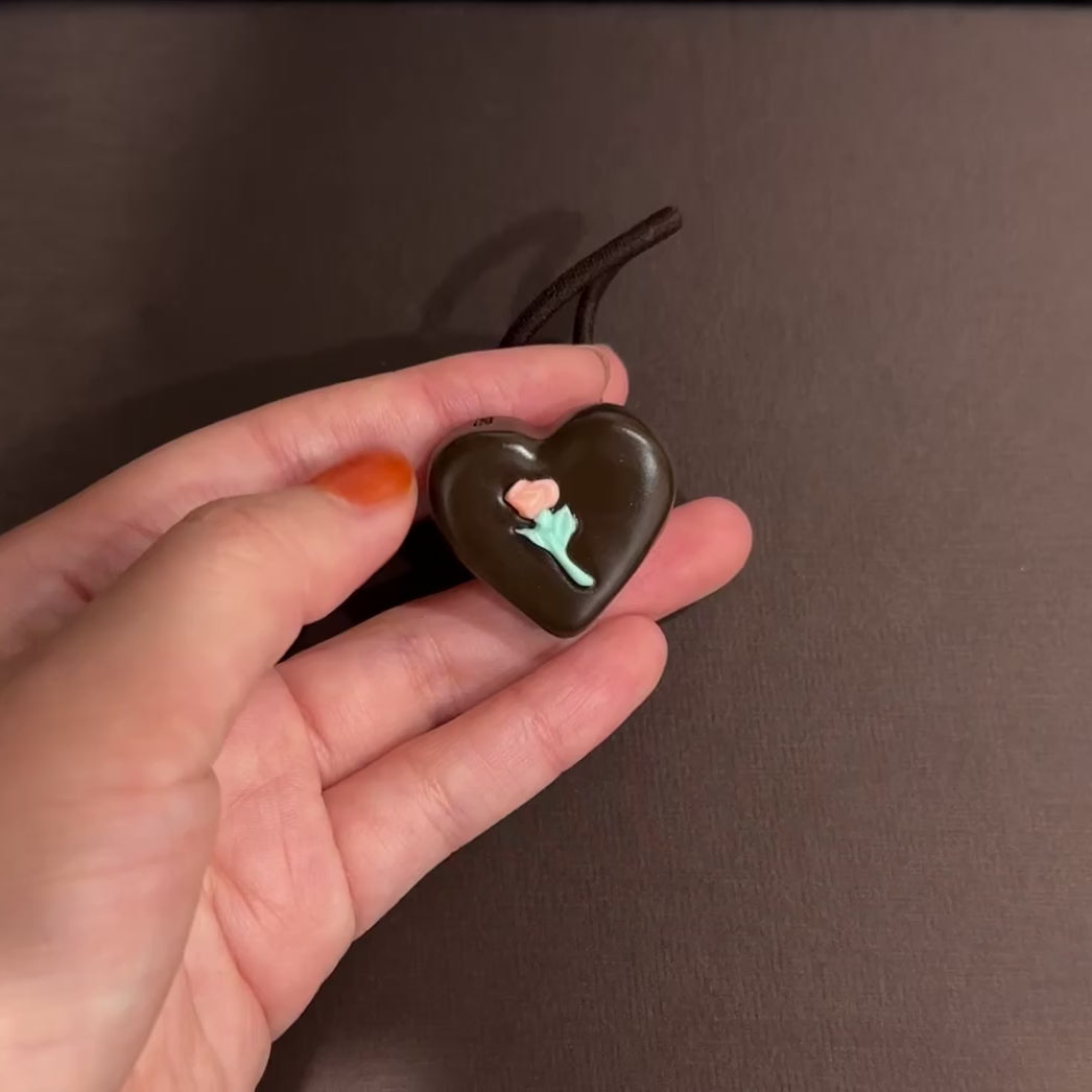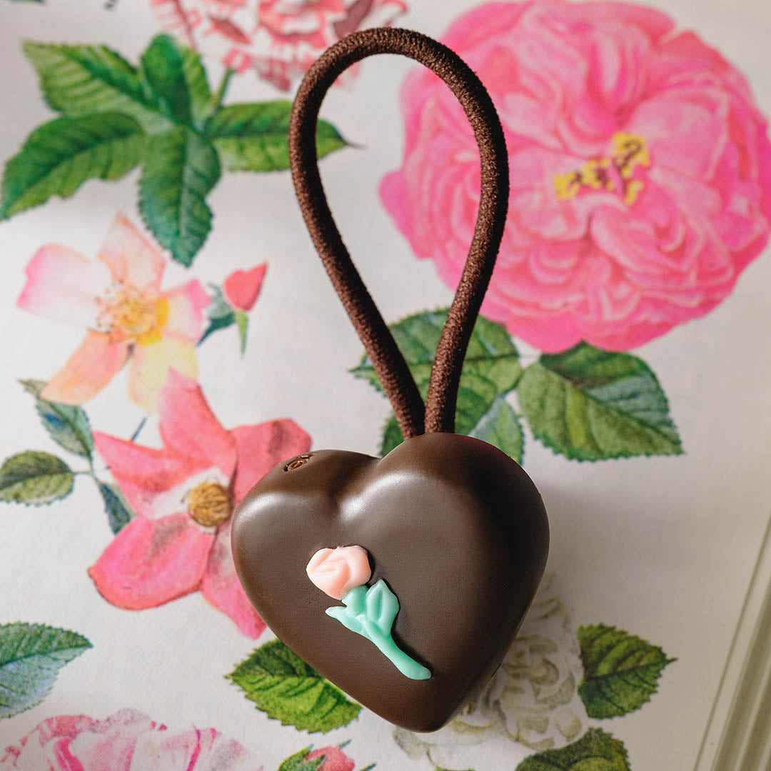 Classical yet sophisticated like a vintage jewelry, the heart-shaped chocolate looks so delicate, it feels as though it might melt at the slightest touch.