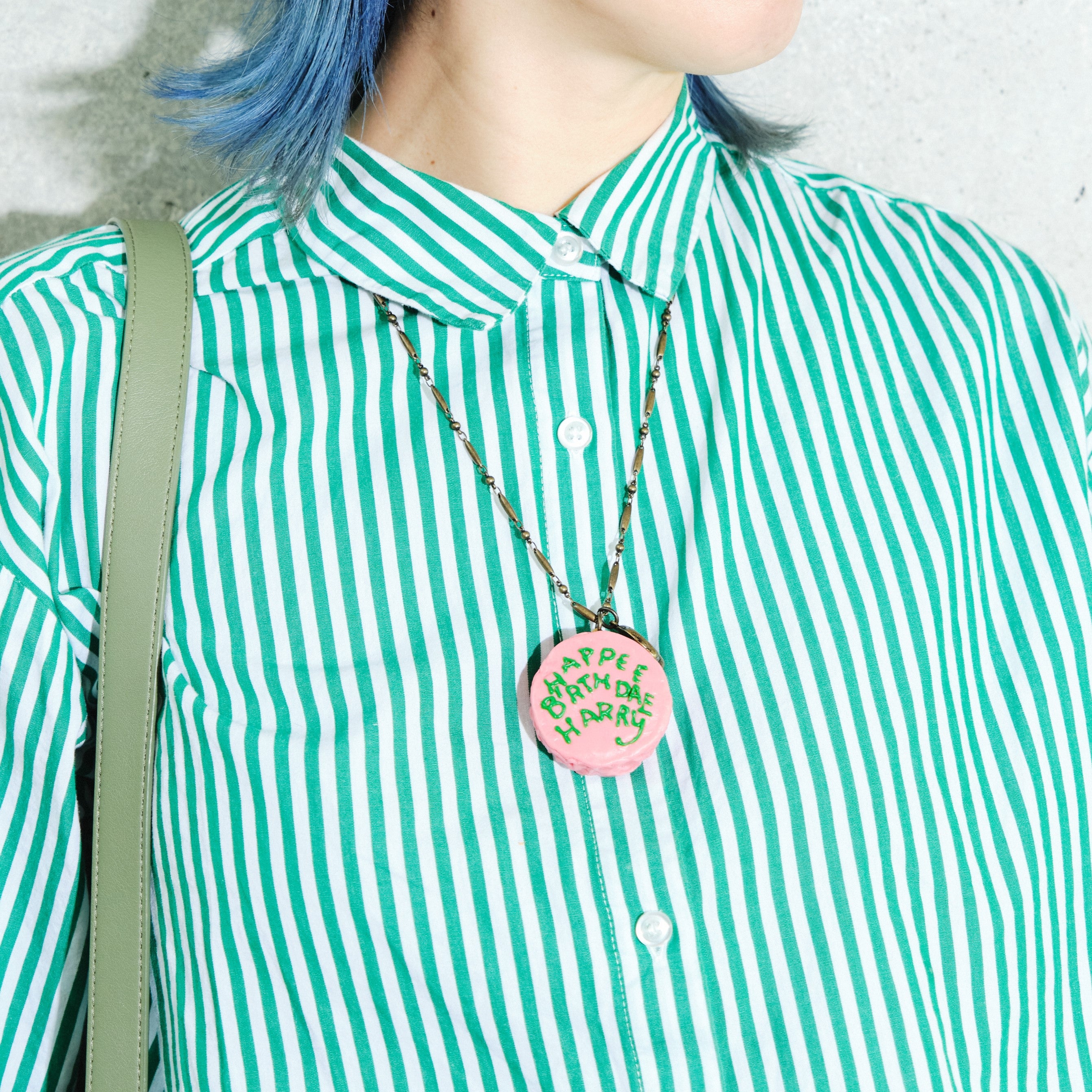 That birthday cake became a necklace and a bag charm inspired by scenes of Harry’s first birthday which is celebrated by someone. The sticky cream and Hagrid’s spelling mistakes are reproduced as they are.