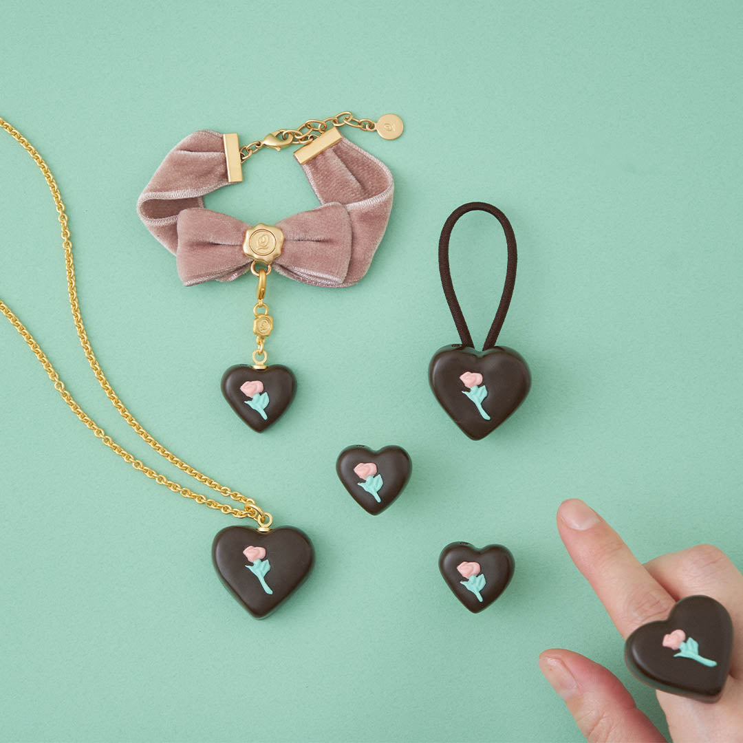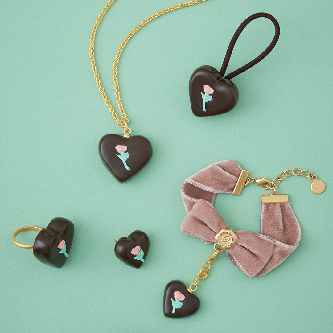 Classical yet sophisticated like a vintage jewelry, the heart-shaped chocolate looks so delicate, it feels as though it might melt at the slightest touch.