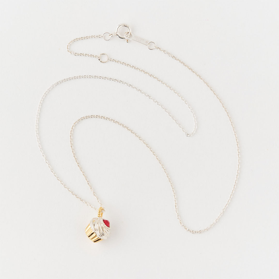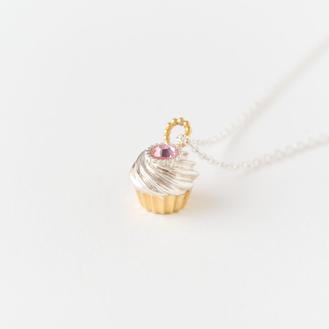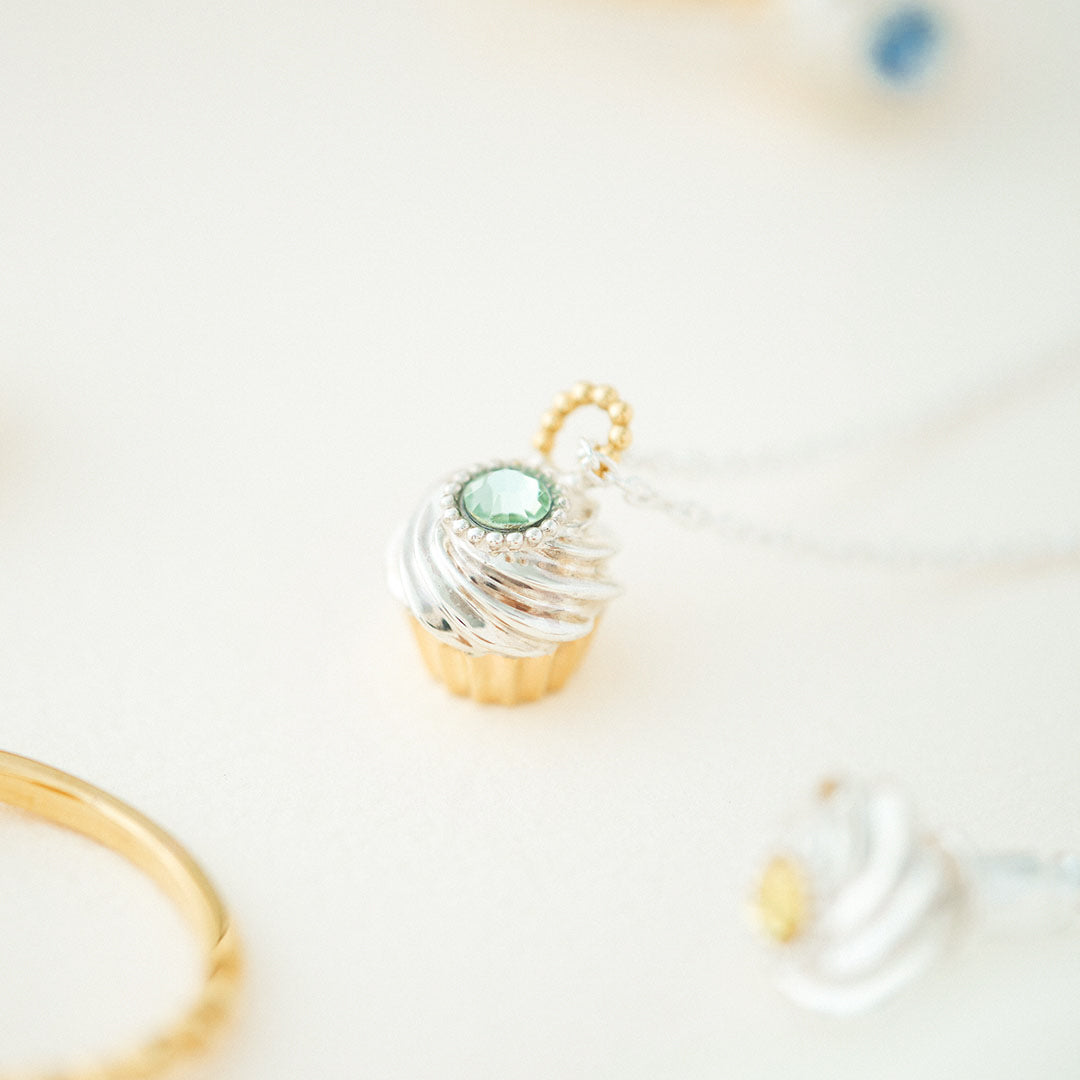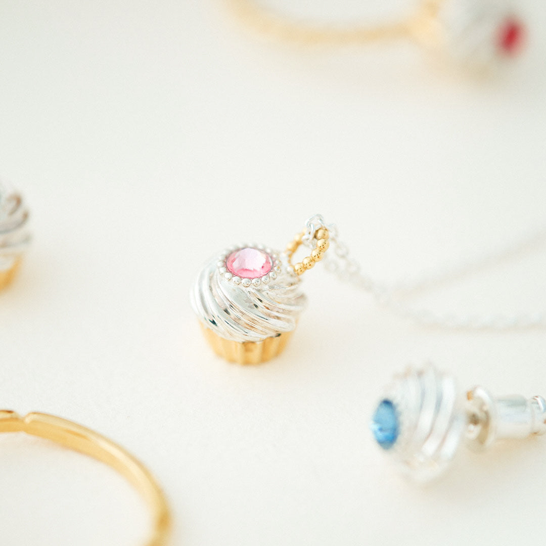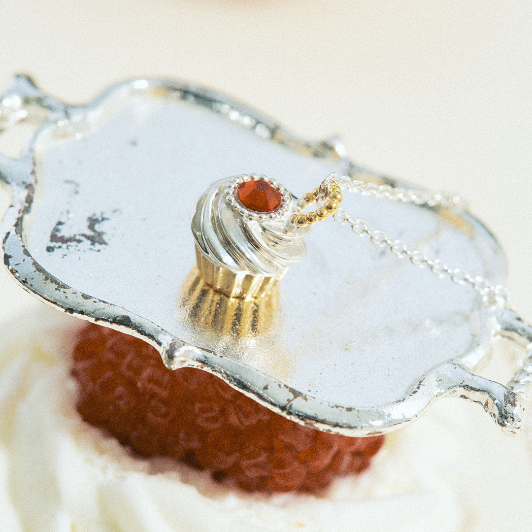 【925 Silver】Whipped Cream Crystal Cupcake Necklace【Japan Jewelry】