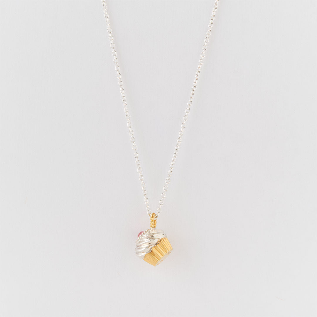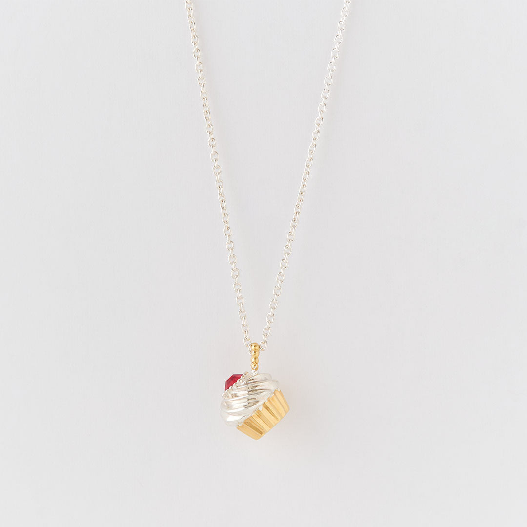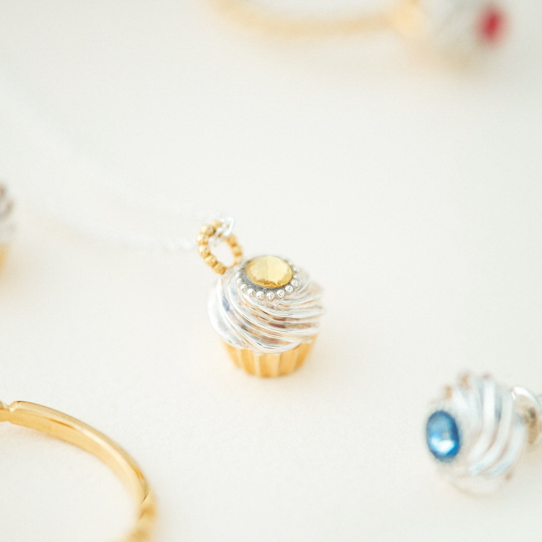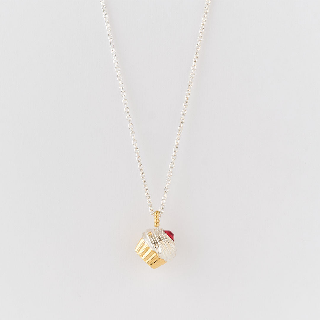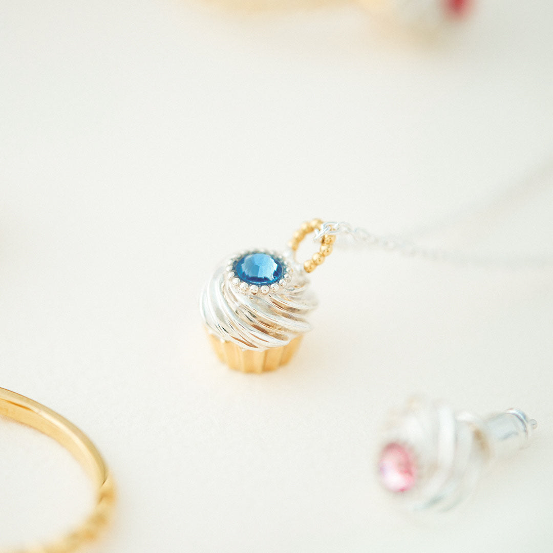 【925 Silver】Whipped Cream Crystal Cupcake Necklace【Japan Jewelry】