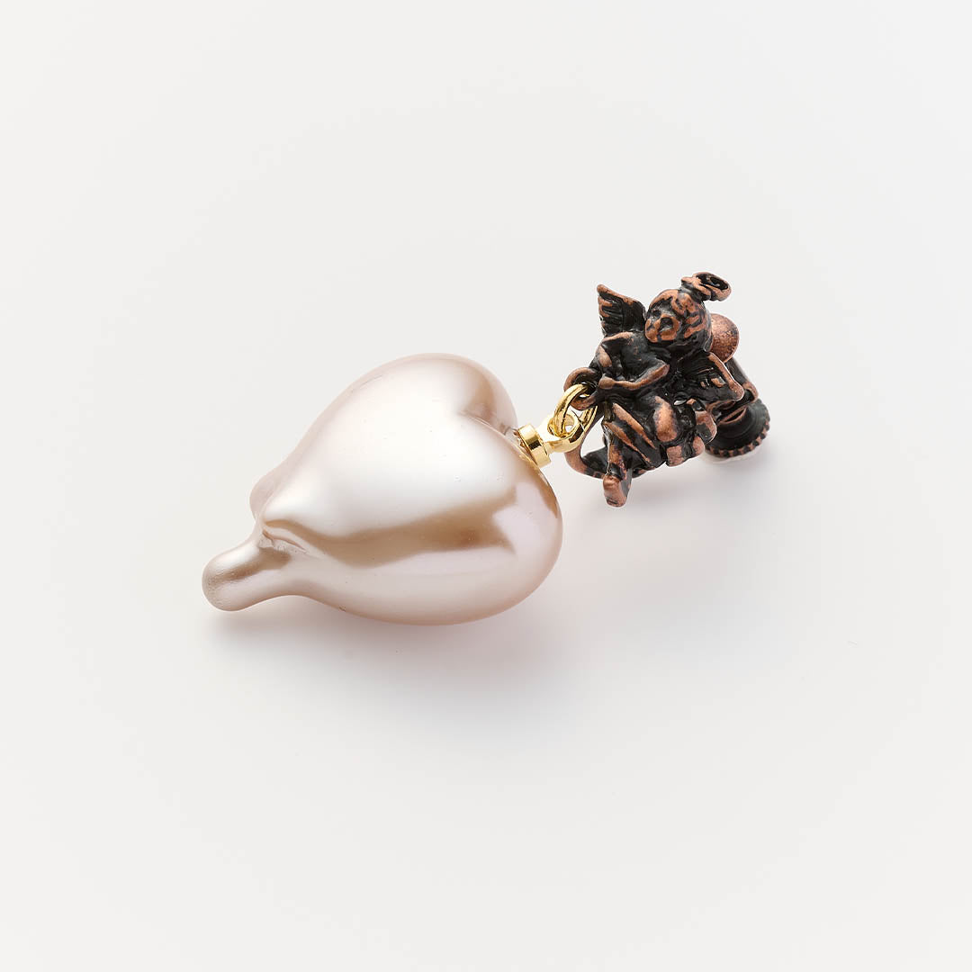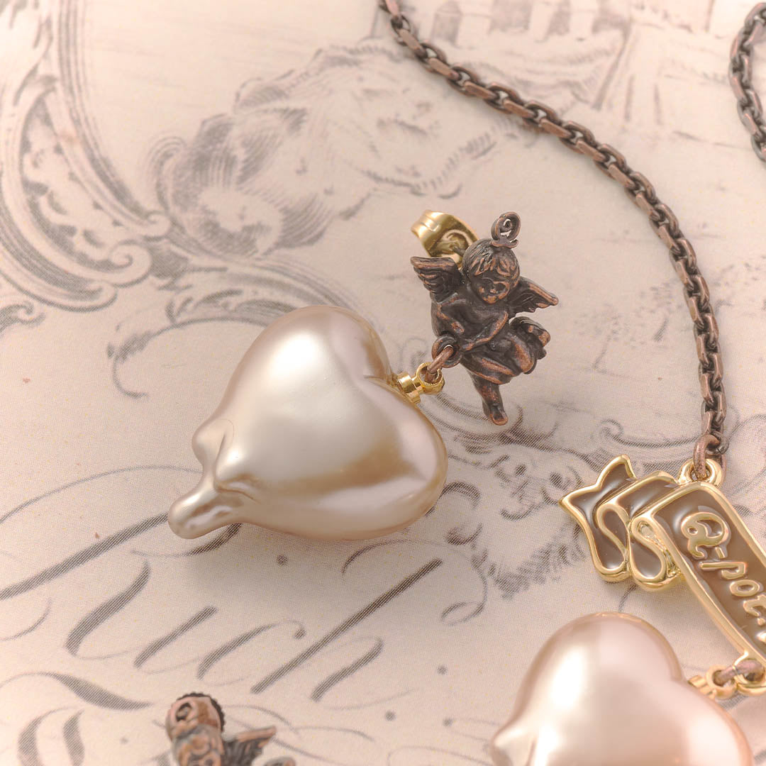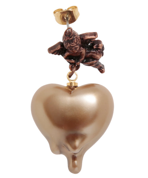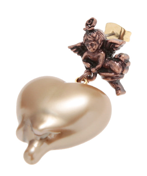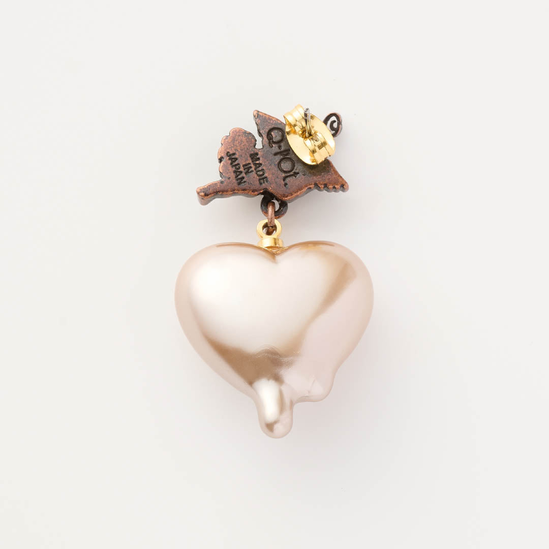 Q-pid. Sweetheart Angel Earring (Milk Chocolate / Single)【Japan Jewelry】
