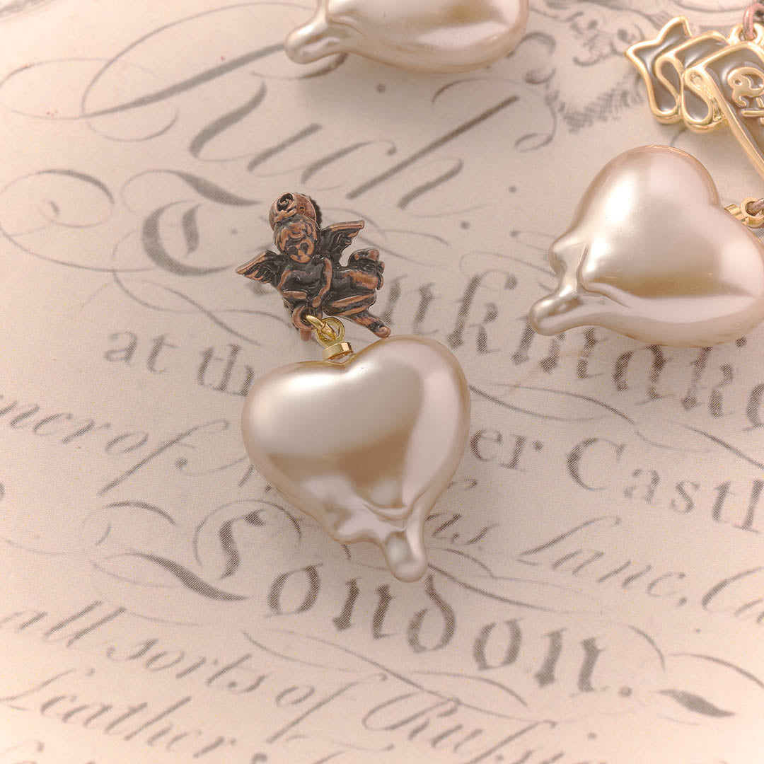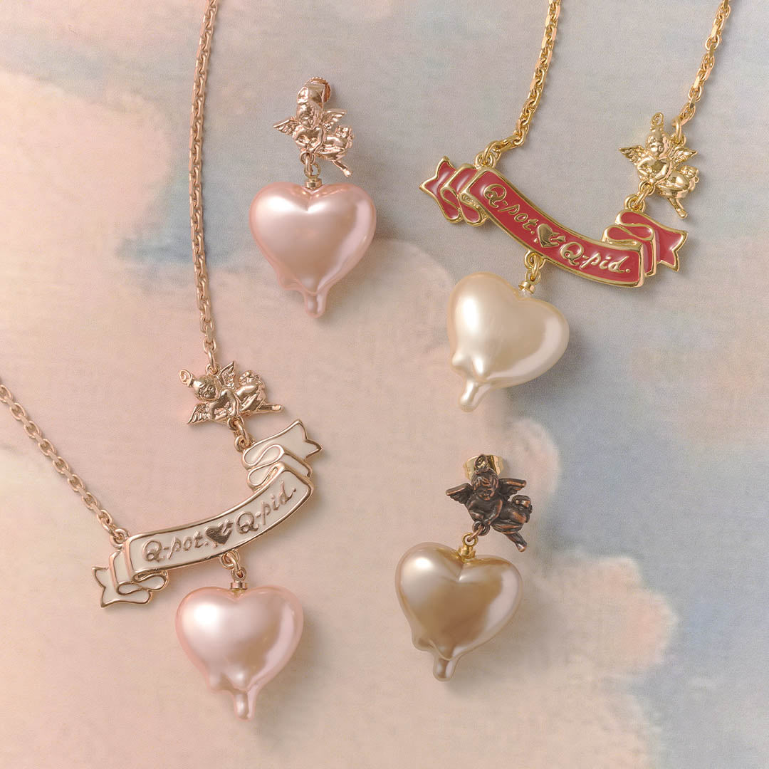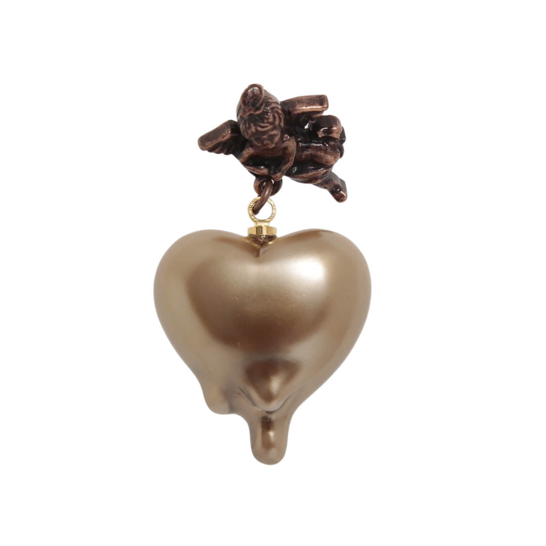 Q-pid. Sweetheart Angel Earring (Milk Chocolate / Single)【Japan Jewelry】