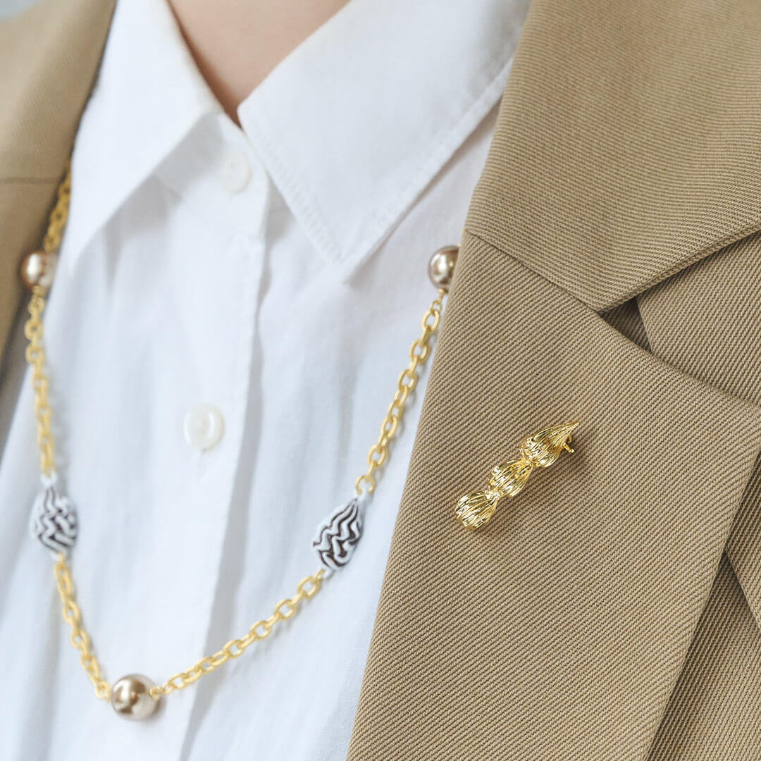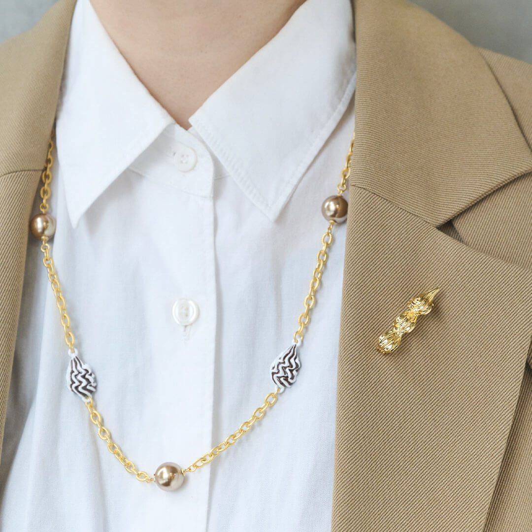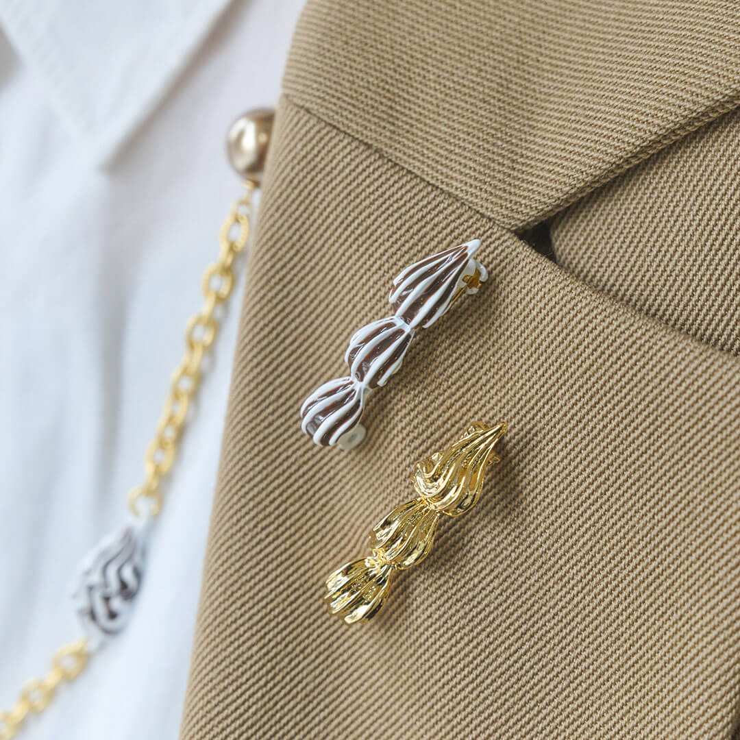 With a lustrous texture and a fine size perfect for daily wear, this elegant whipped cream design is tailored for sophisticated styles. The whimsical and playful brooch that looks as if fluffy whipped cream has been artfully piped, bringing joy with its charmingly unique design.