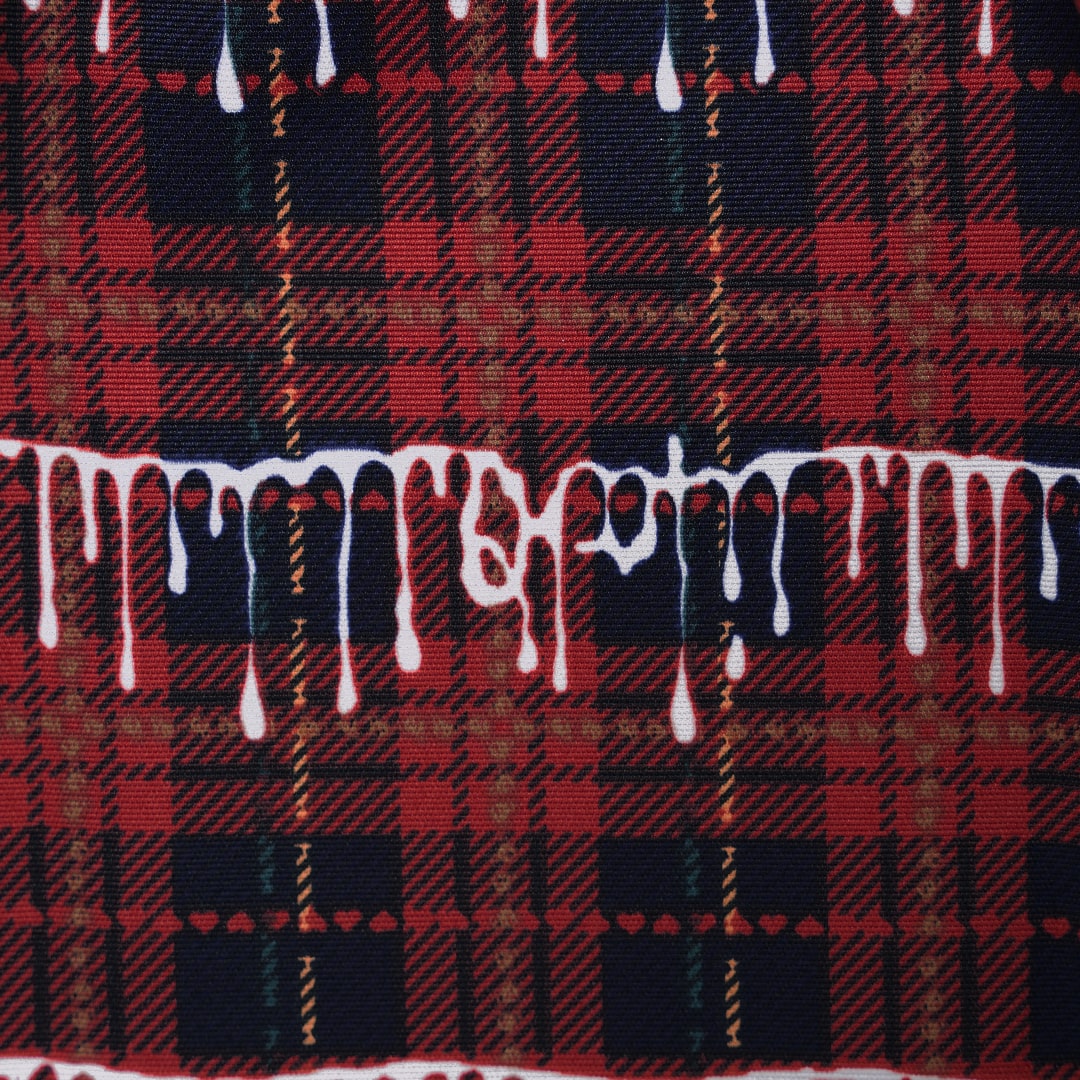 The happiness-themed red check pattern features cuteness-inspired motifs of heart, candy, and bears, along with dripping sugar for a sweet design. The "melt" detail is adorned with the words "Q-pot." and "Poppy."