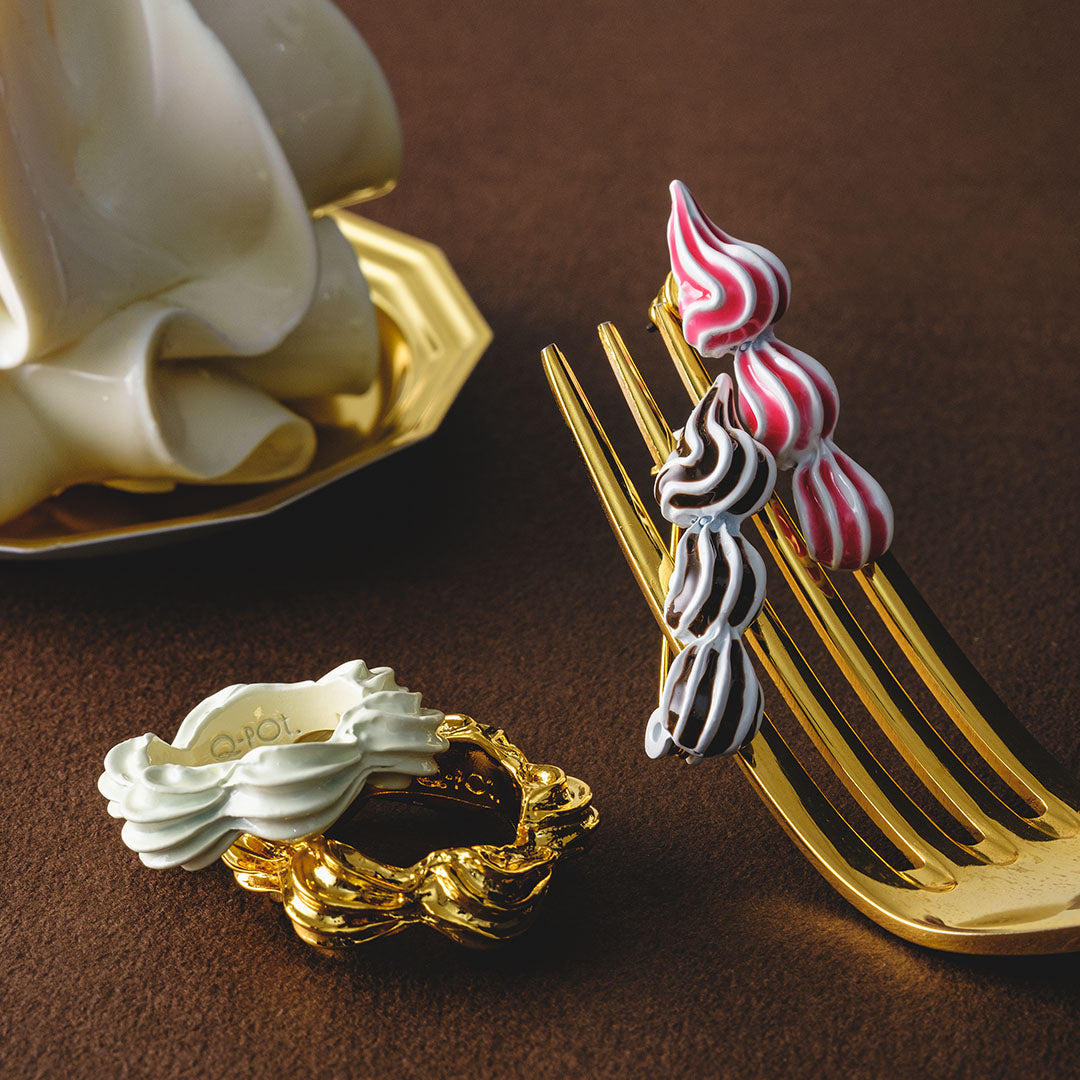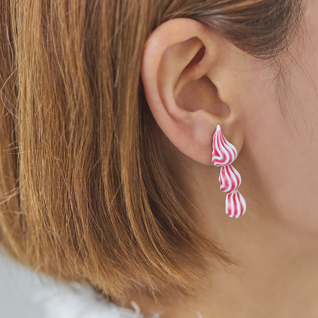 With a lustrous texture and a fine size perfect for daily wear, this elegant whipped cream design is tailored for sophisticated styles. Rich, drizzling strawberry sauce crafted with care, each piece boasting its own unique texture and charm. The whimsical and playful earring that looks as if fluffy whipped cream has been artfully piped, bringing joy with its charmingly unique design.