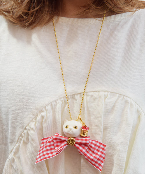 Gingham Check Ribbon Charm (Red×White)【Japan Jewelry】