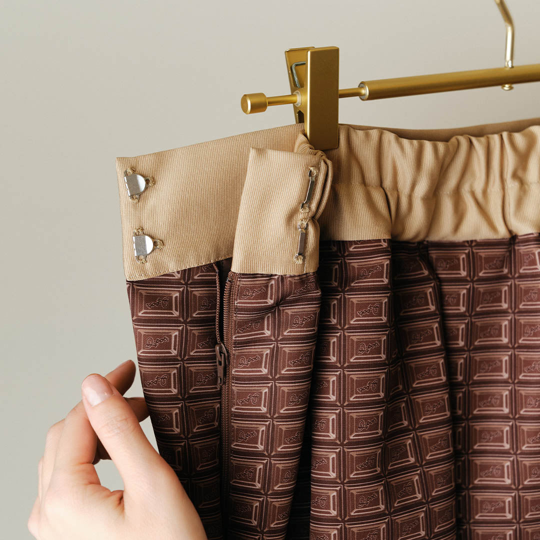 Skirt: Polyester 100% Belt: Polyester 100% Lining: Polyester 65%, Cotton 35% Others: Hook, Zipper, Sewing Elastic, Button |