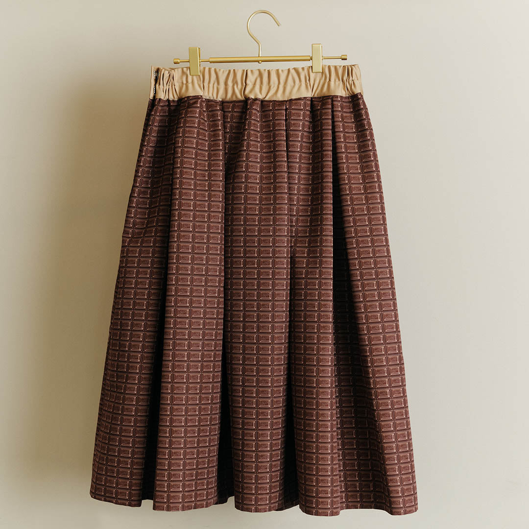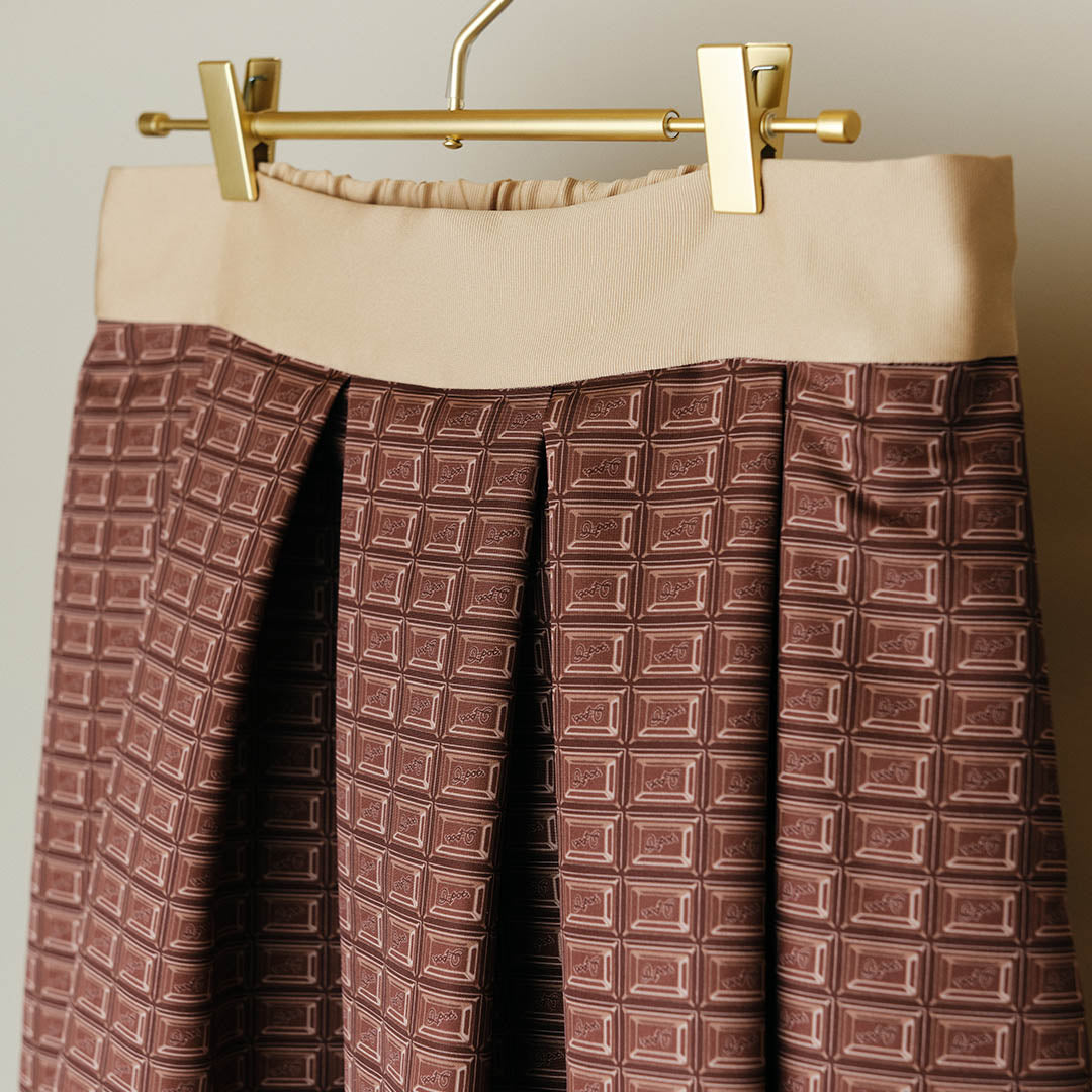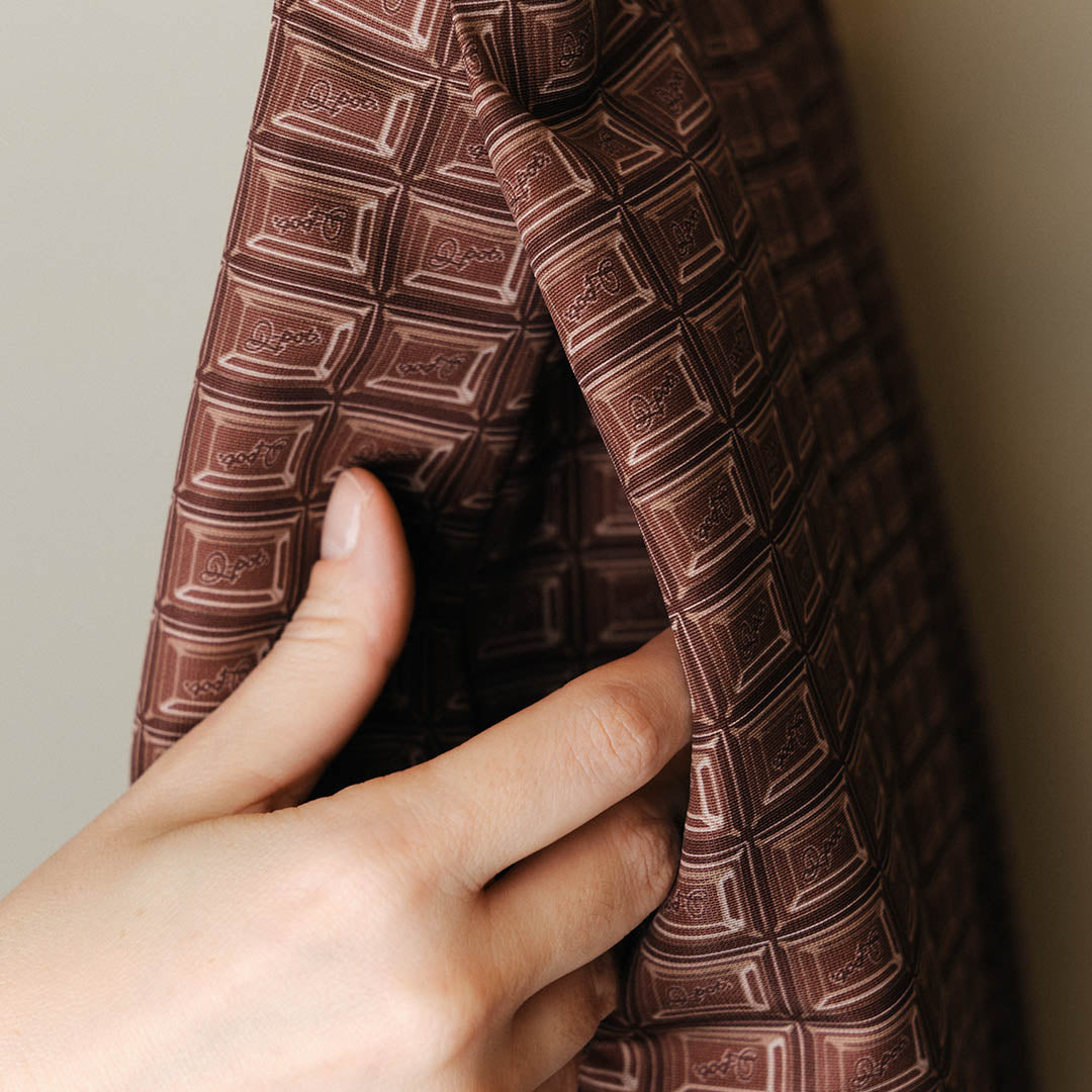 An original textile dress featuring Q-pot. classical bitter chocolates.