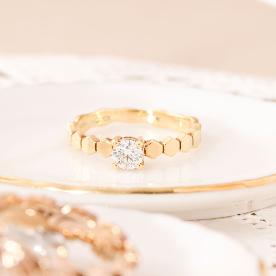 Let the bee be an assistant of your happy life. A ring full of Q-pot. unique design. A bee engraved on the back of the ring will bring the love of the two.