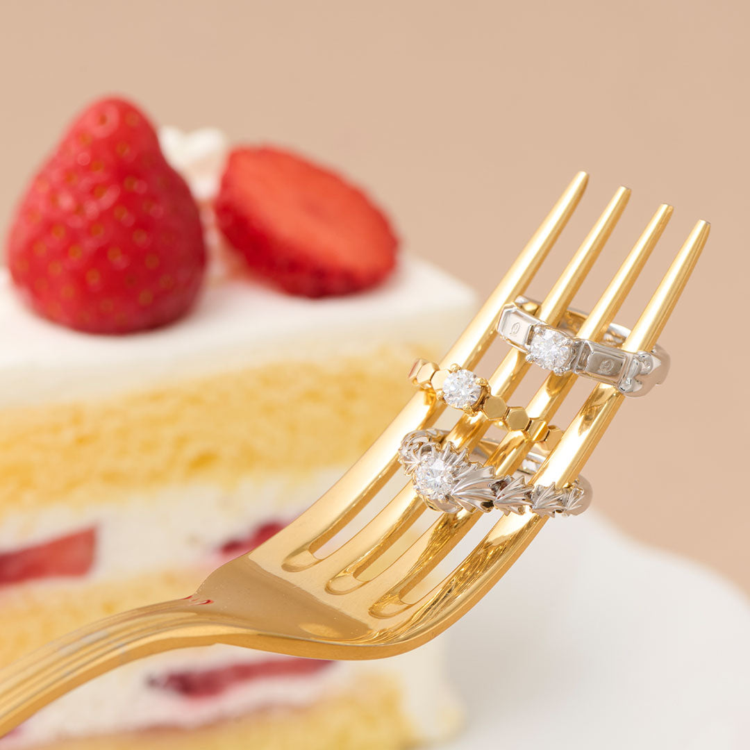 Secret spell: By secretly placing candy on the ring finger of your left, you can lead a sweet married life. Inspired by wedding spells, this engagement ring features a design of secret sugar and whipped cream. Sweet like whipped cream, it will being blissful days that melt away like happiness to the bride.