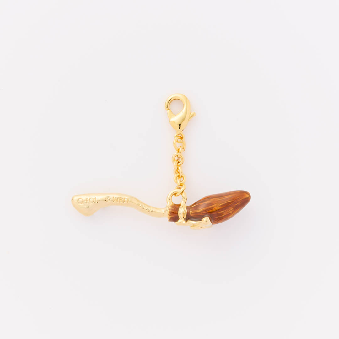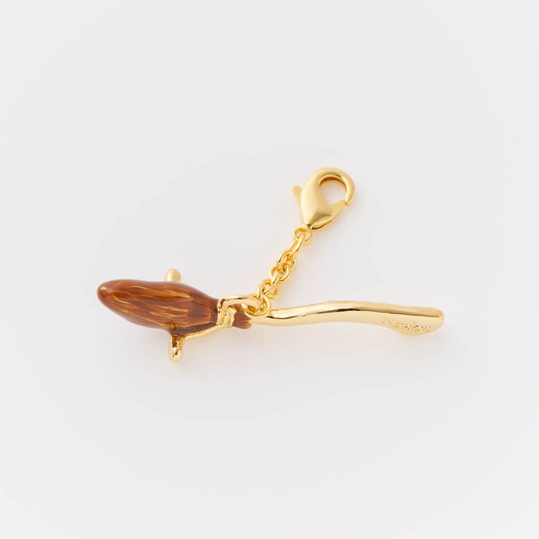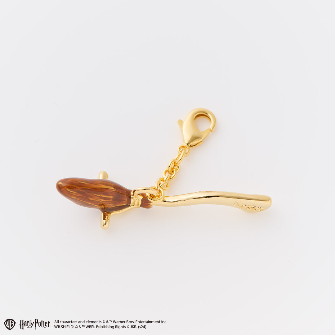 The charm inspired by the Nimbus 2000, which is a broomstick gifted to Harry by Professor McGonagall when he became the new Seeker for the Gryffindor Quidditch team, is crafted in a luxurious chocolate-like design with brown and gold accents. This elegant piece can be added to necklaces or bag charms, making it a conceptual accessory that brings you into the enchanting world of Harry Potter.