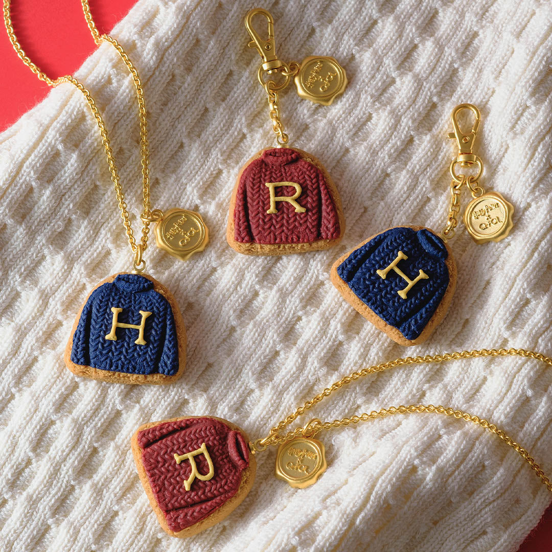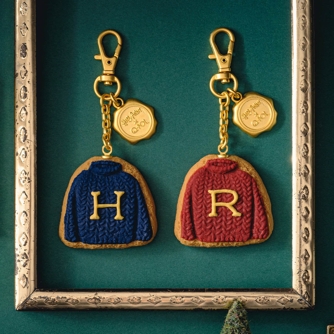 Inspired by the sweaters knitted by Mrs. Weasley for Harry and Ron, delicious-looking sugar cookies have been freshly baked. The realistic icing details, resembling decorations on real cookies, showcase Q-pot.'s commitment to high-quality, Made-in-Japan craftsmanship.