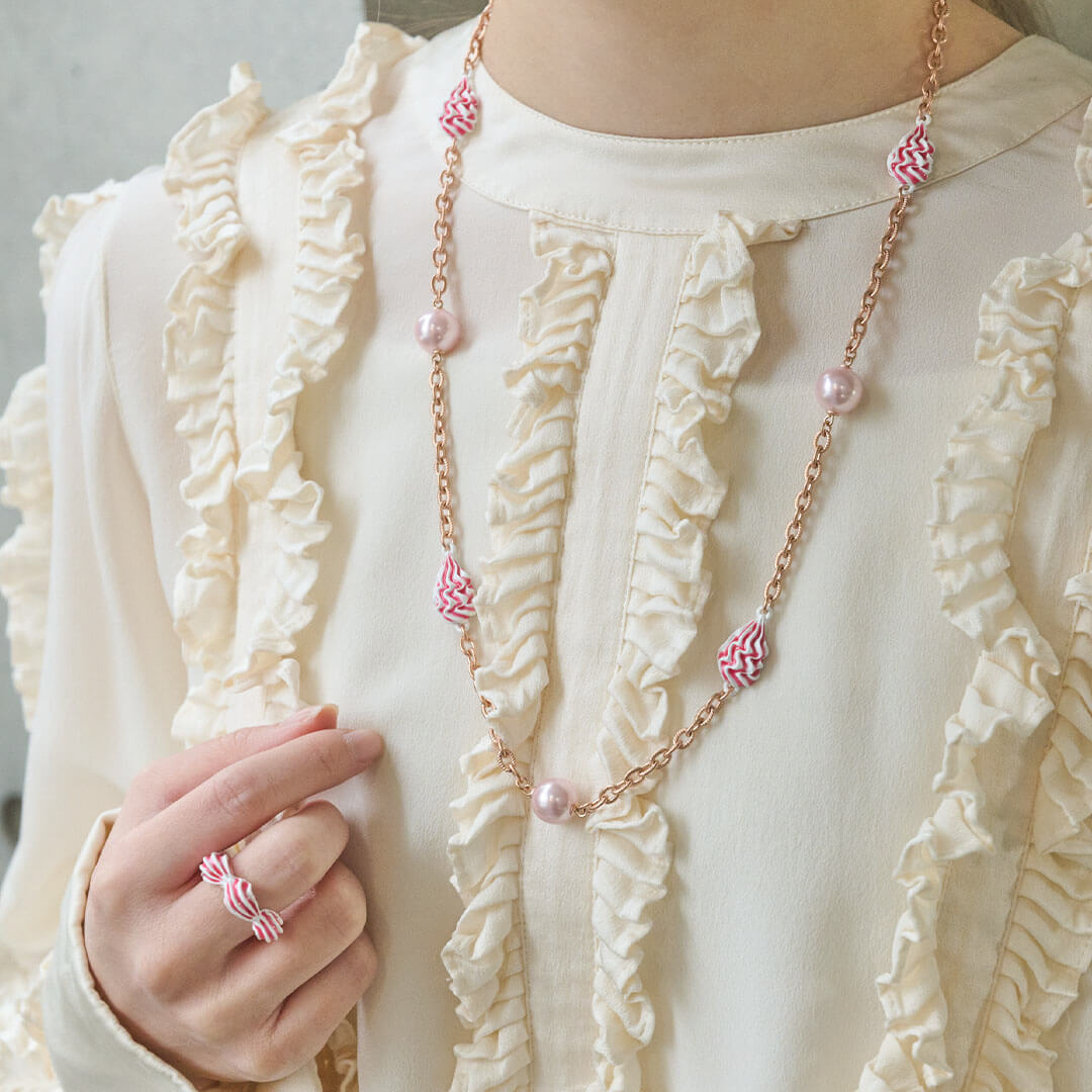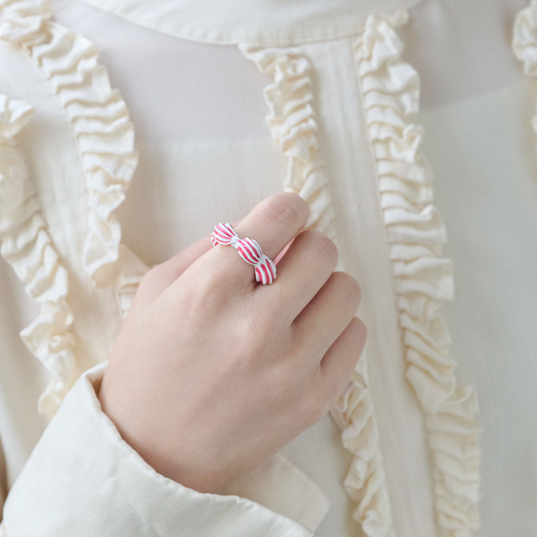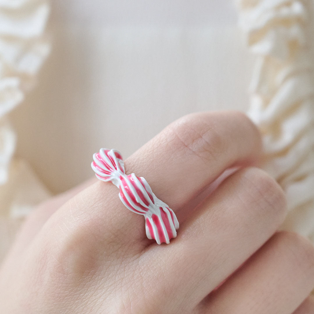 With a lustrous texture and a fine size perfect for daily wear, this elegant whipped cream design is tailored for sophisticated styles. Rich, drizzling strawberry sauce crafted with care, each piece boasting its own unique texture and charm. The whimsical and playful ring that looks as if fluffy whipped cream has been artfully piped, bringing joy with its charmingly unique design.