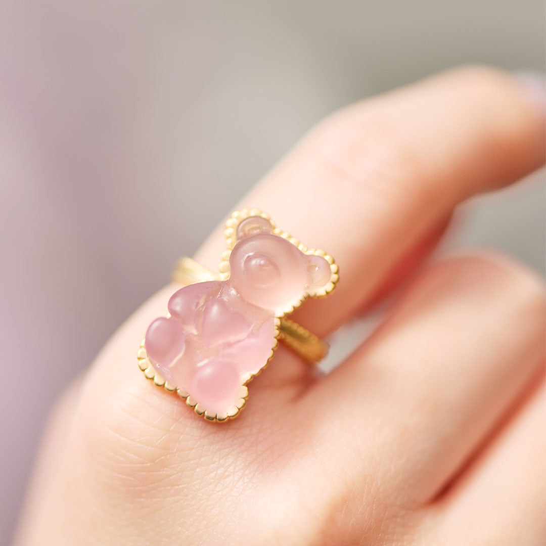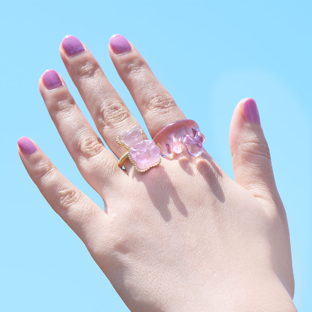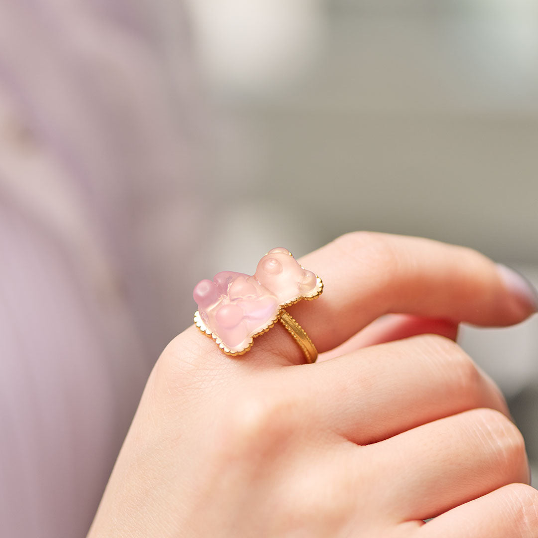 The juicy Teddy Bear Gummy with clear color and texture just like a real one. The heart-hugging look and the shape is adorable! The simple and mini size ring adds fun to your outfit.