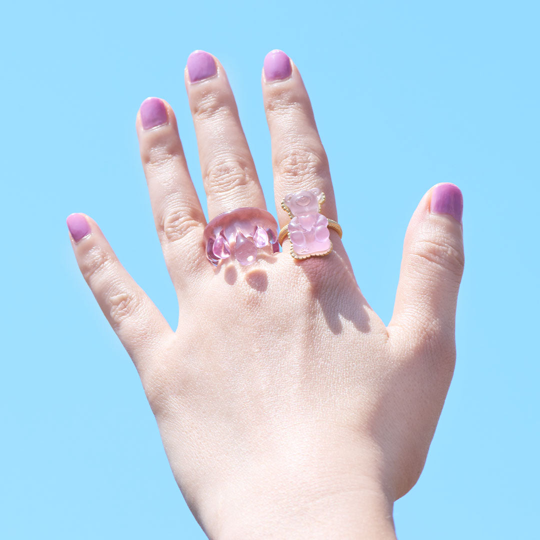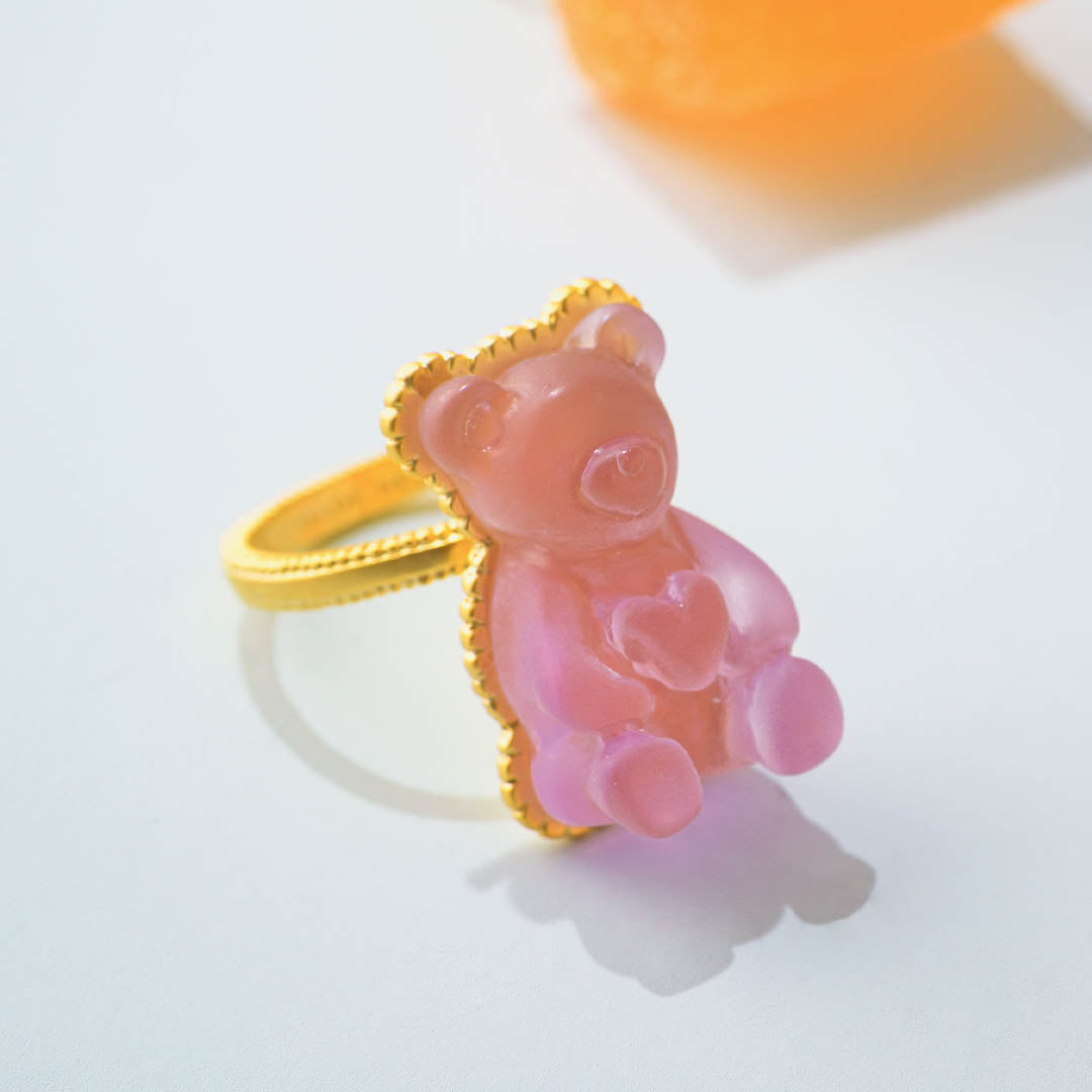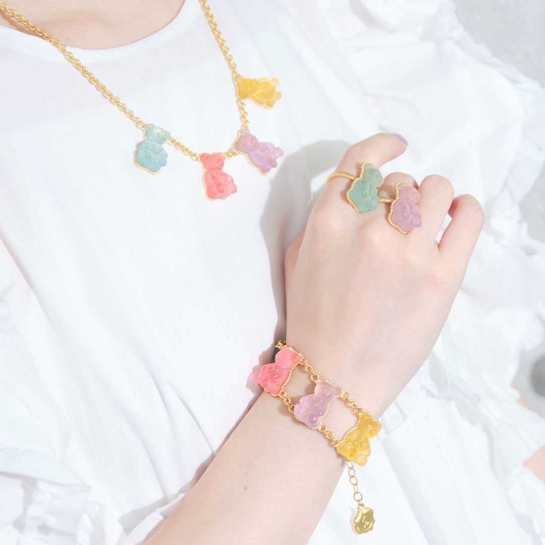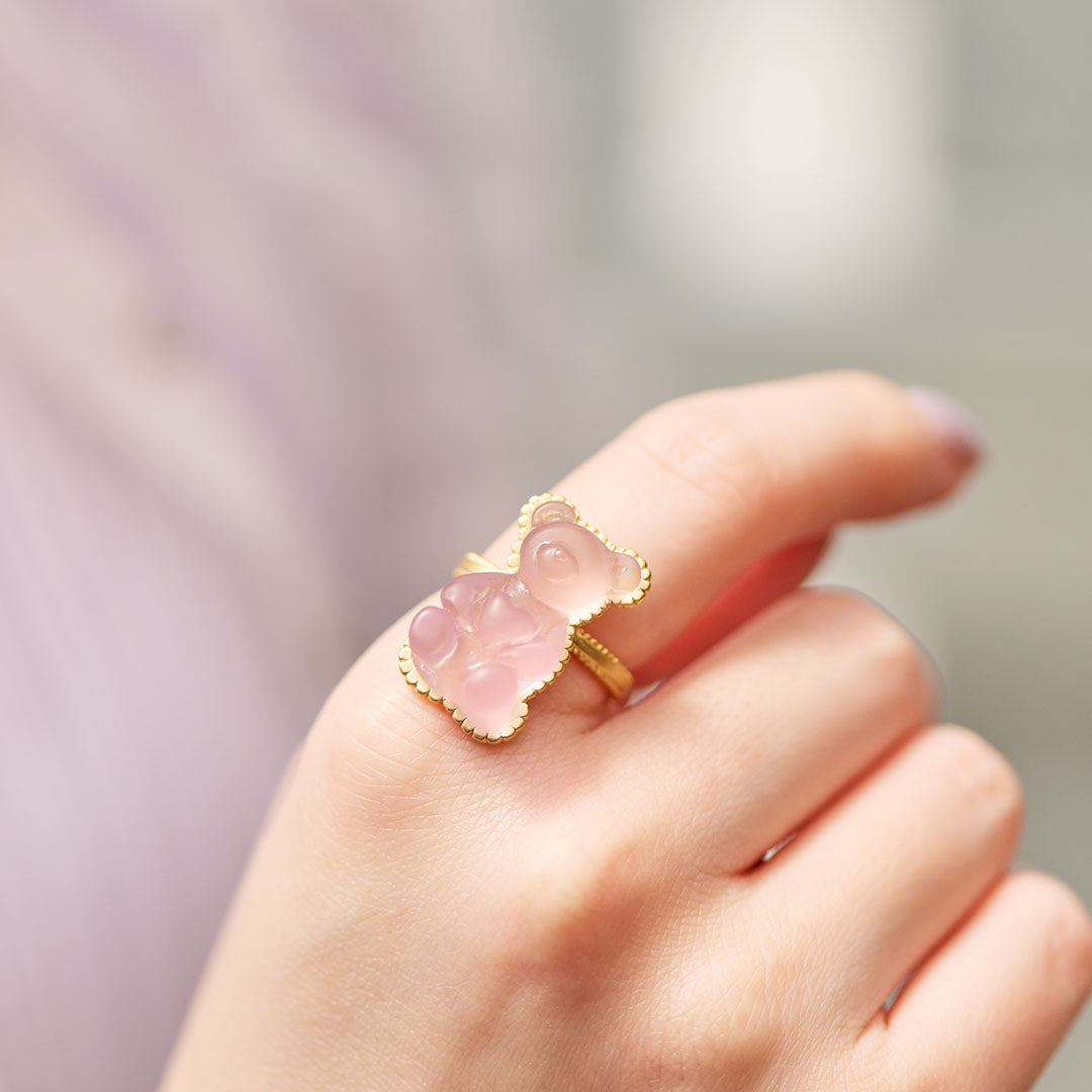 The juicy Teddy Bear Gummy with clear color and texture just like a real one. The heart-hugging look and the shape is adorable! The simple and mini size ring adds fun to your outfit.