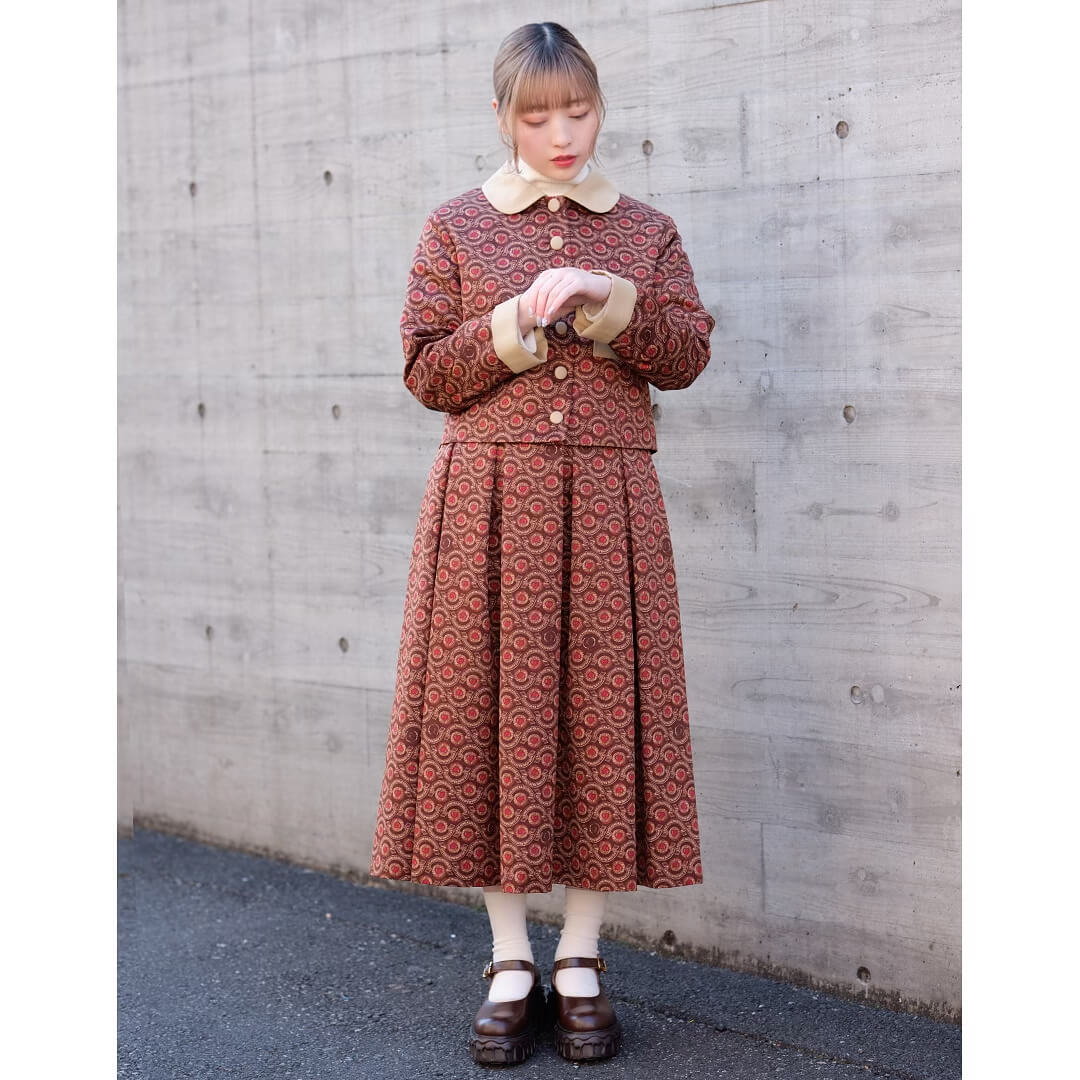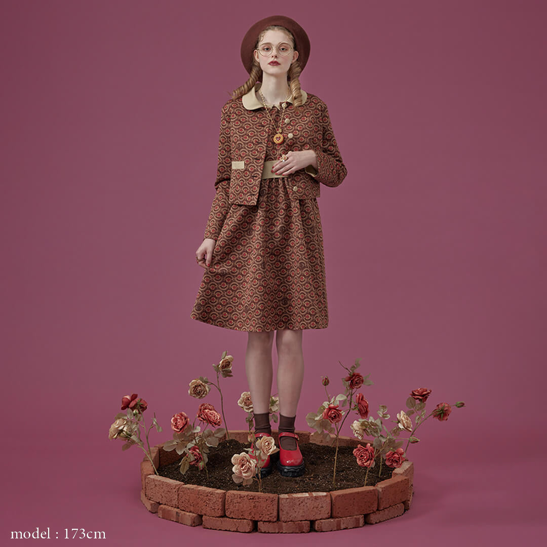 The jacket that you can enjoy a matching cloth with skirt. The size is a little roomy so you can match other cloth inside. You can also roll up the sleeves and enjoy the 2 way styles.