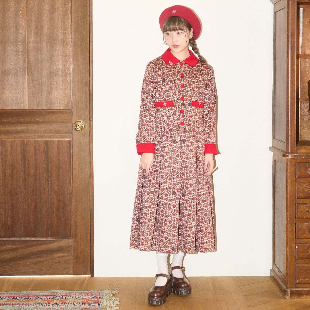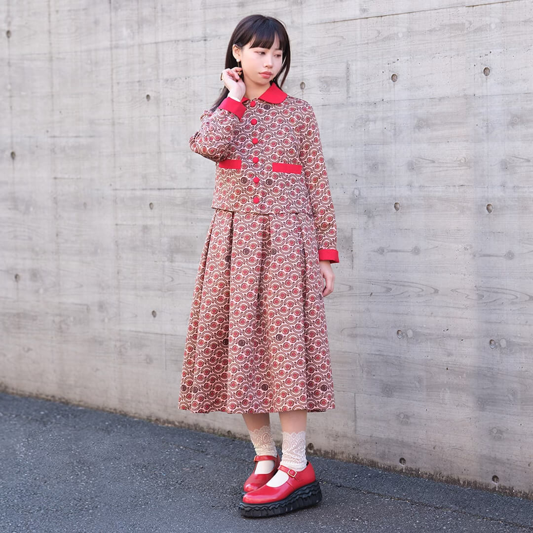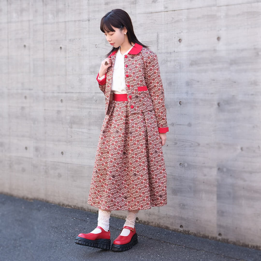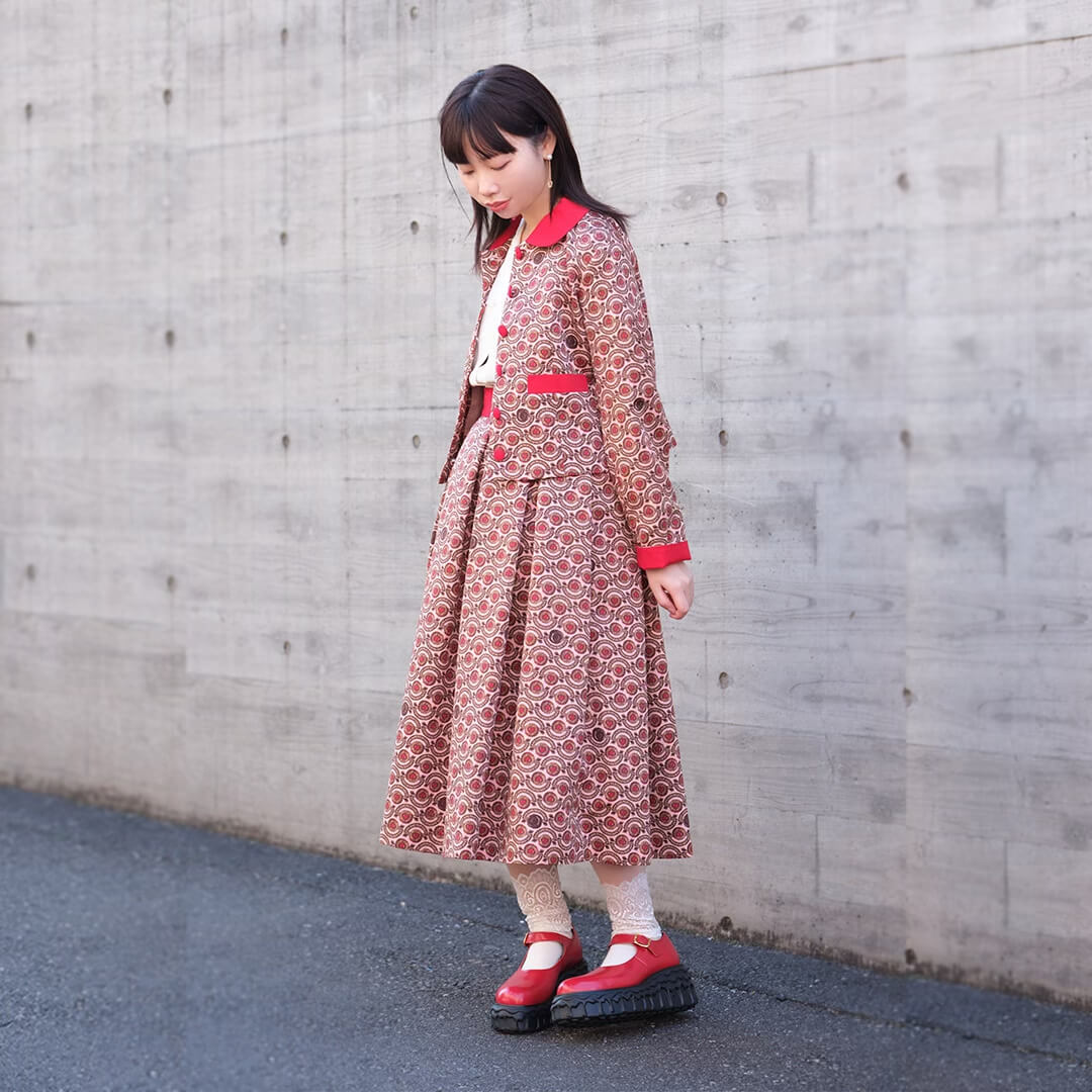 The jacket that you can enjoy a matching cloth with skirt. The size is a little roomy so you can match other cloth inside. You can also roll up the sleeves and enjoy the 2 way styles.