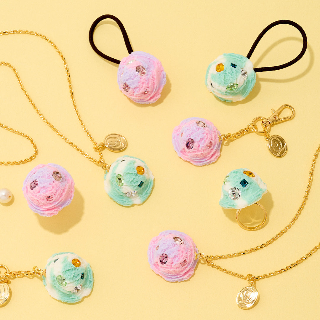 Colorful crystals inspired of popping candy sprinkled on marble ice cream scoop. KIRA KIRA is Japanese used to describe flash of sparkling shine, just like what you see on this scoop of ice cream.