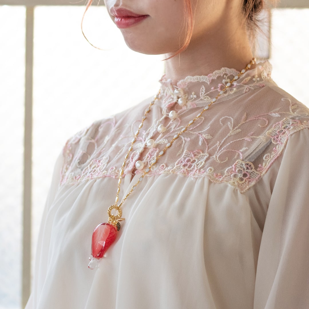 Honey Bee meets Strawberry Necklace【Japan Jewelry】