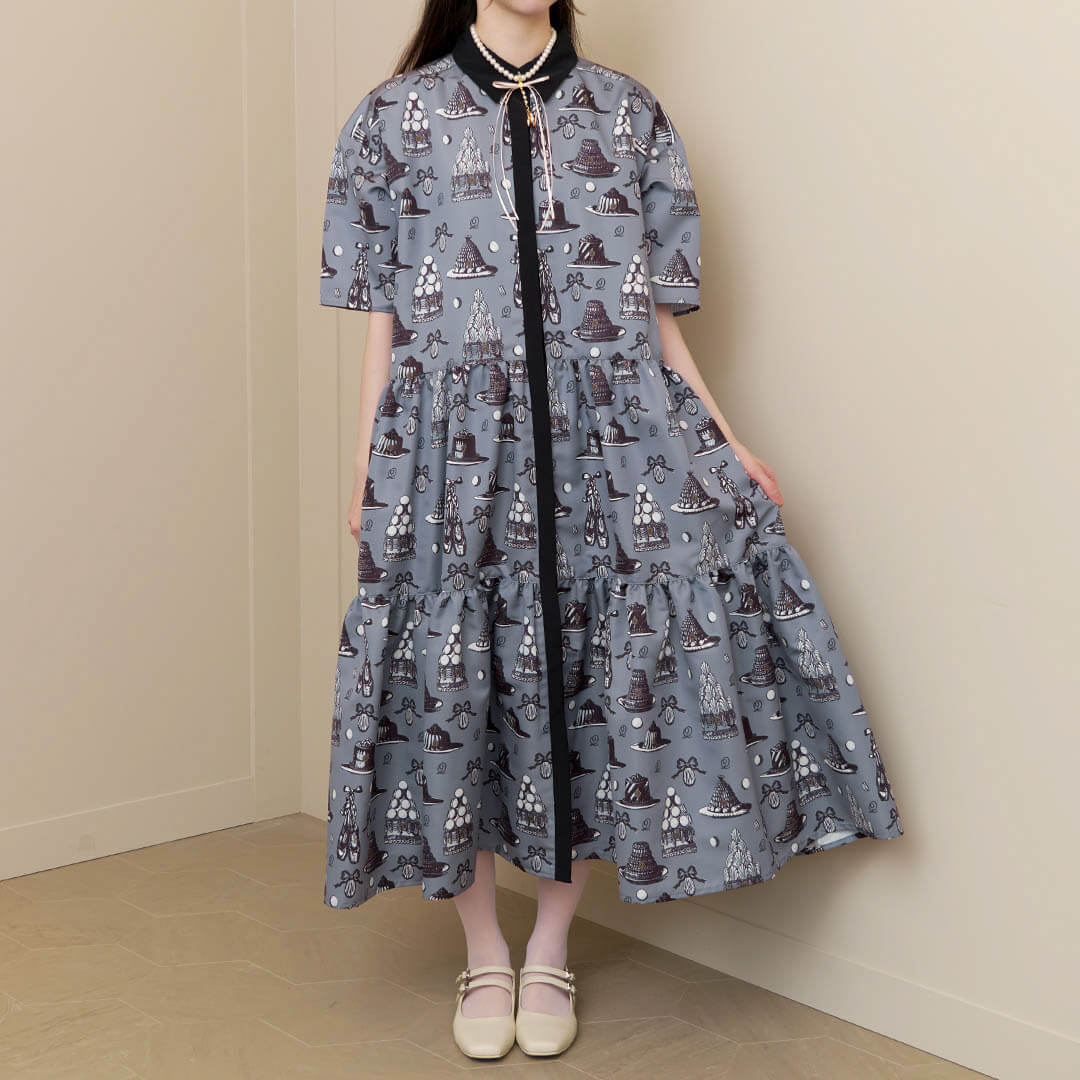 Madeleine et Ballerine Tiered Shirt Dress (Moonlight Gray)【Japan Jewelry】