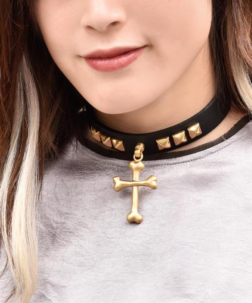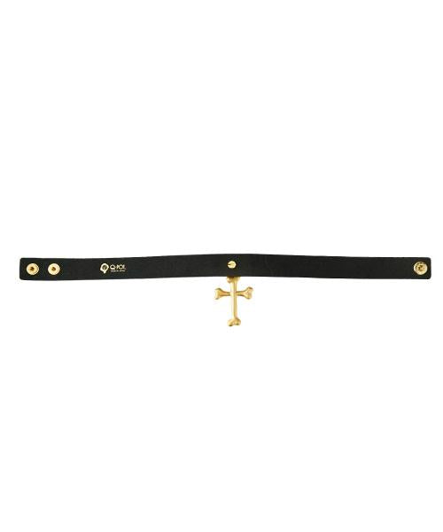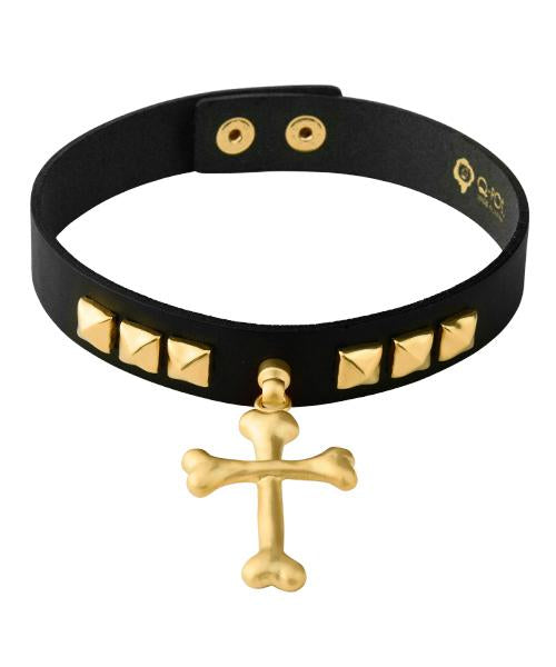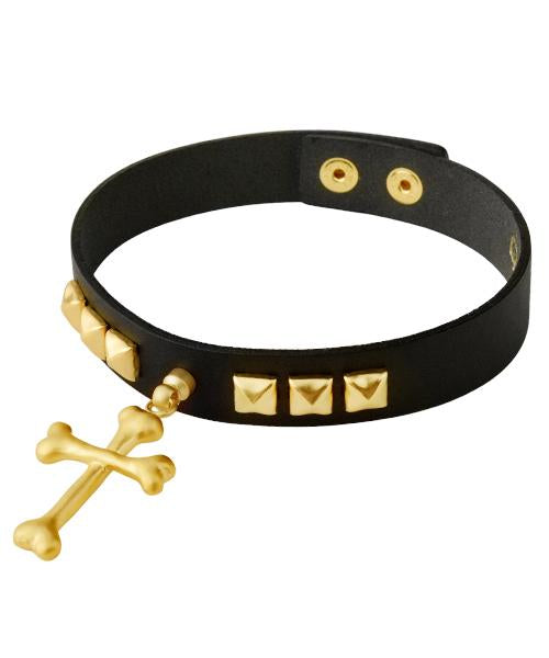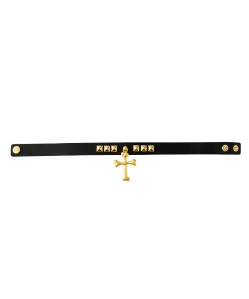 Bone Cross Leather Choker (Matt Gold)【Japan Jewelry】