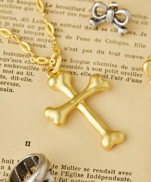 Bone Cross Necklace (Matt Gold)【Japan Jewelry】