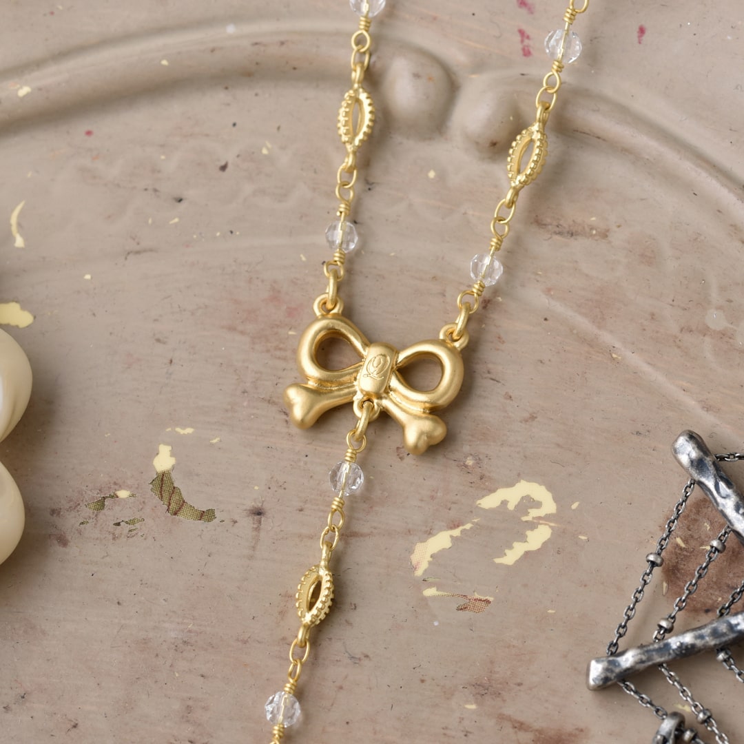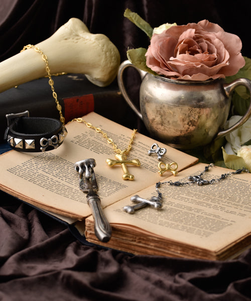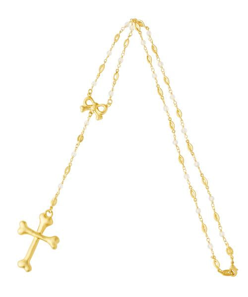 Bone Cross Rosary Necklace (Matt Gold)【Japan Jewelry】