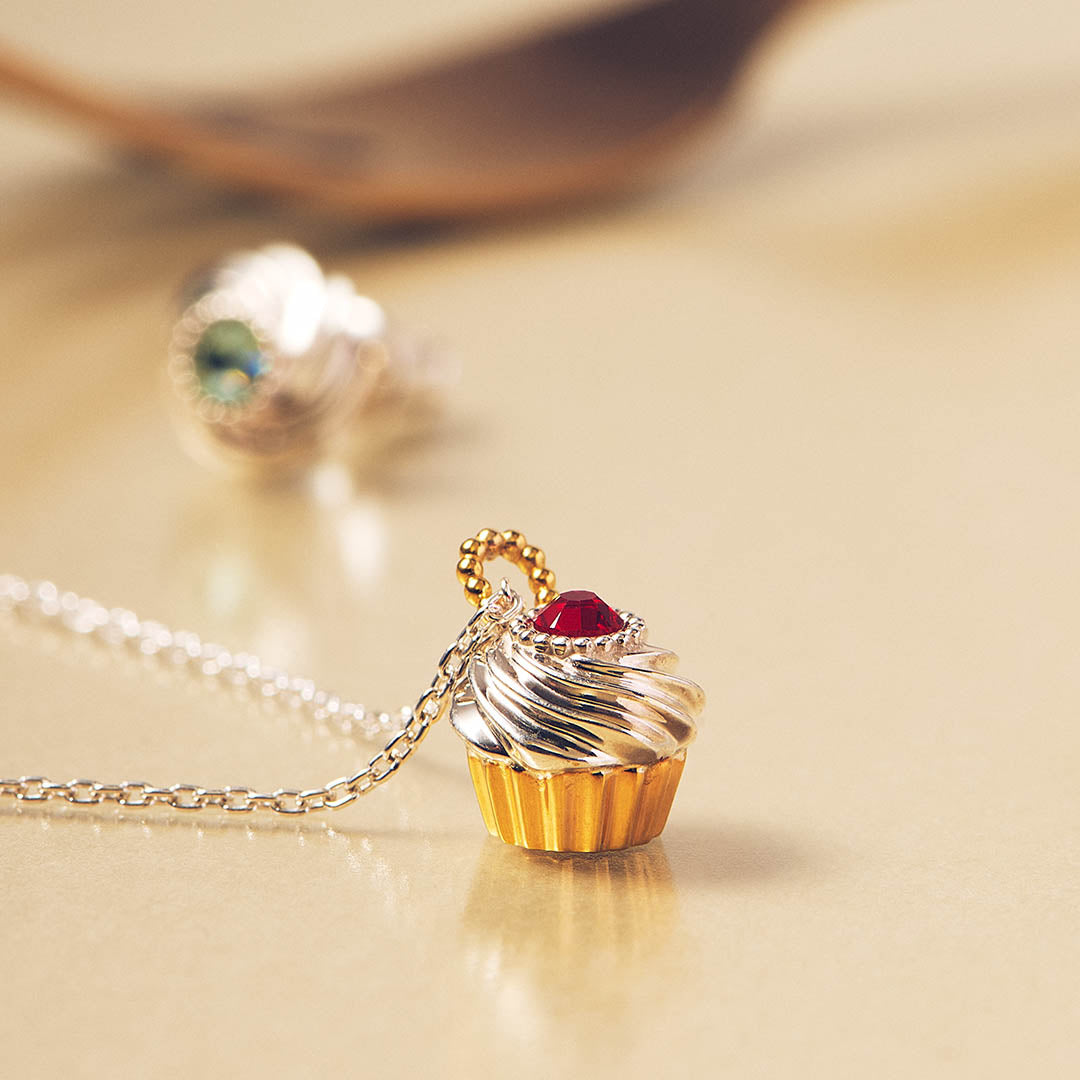 【925 Silver】Whipped Cream Crystal Cupcake Necklace【Japan Jewelry】