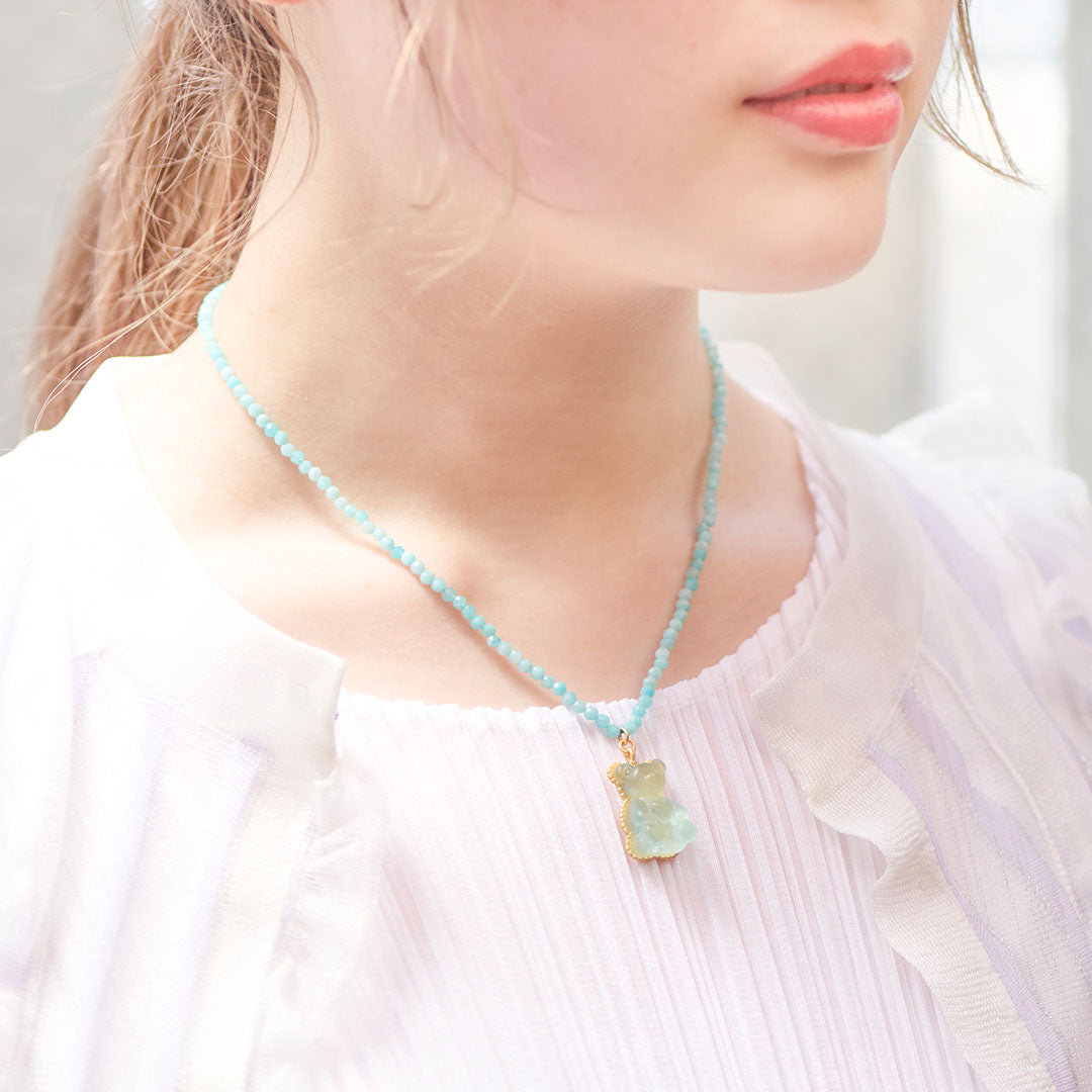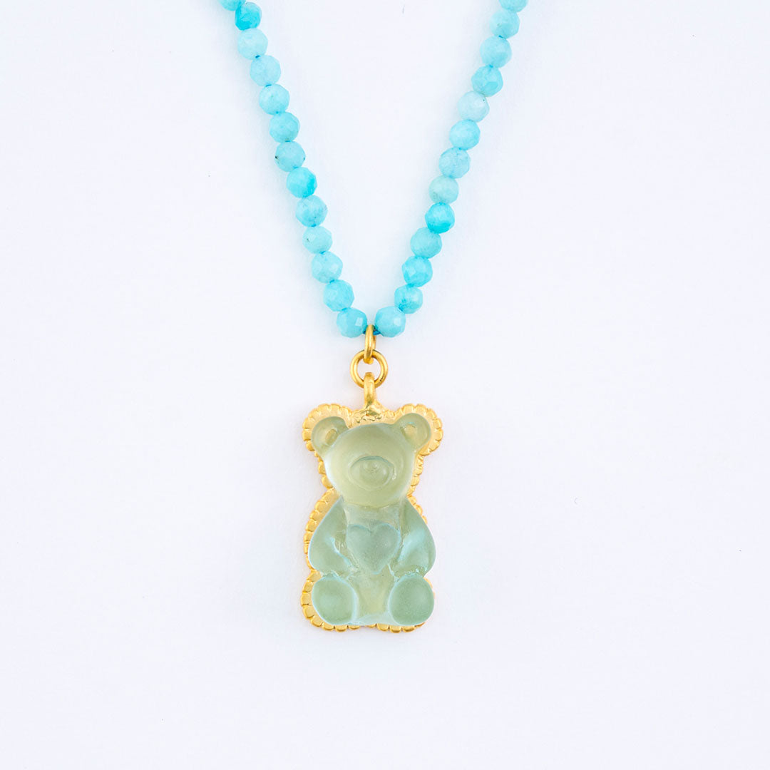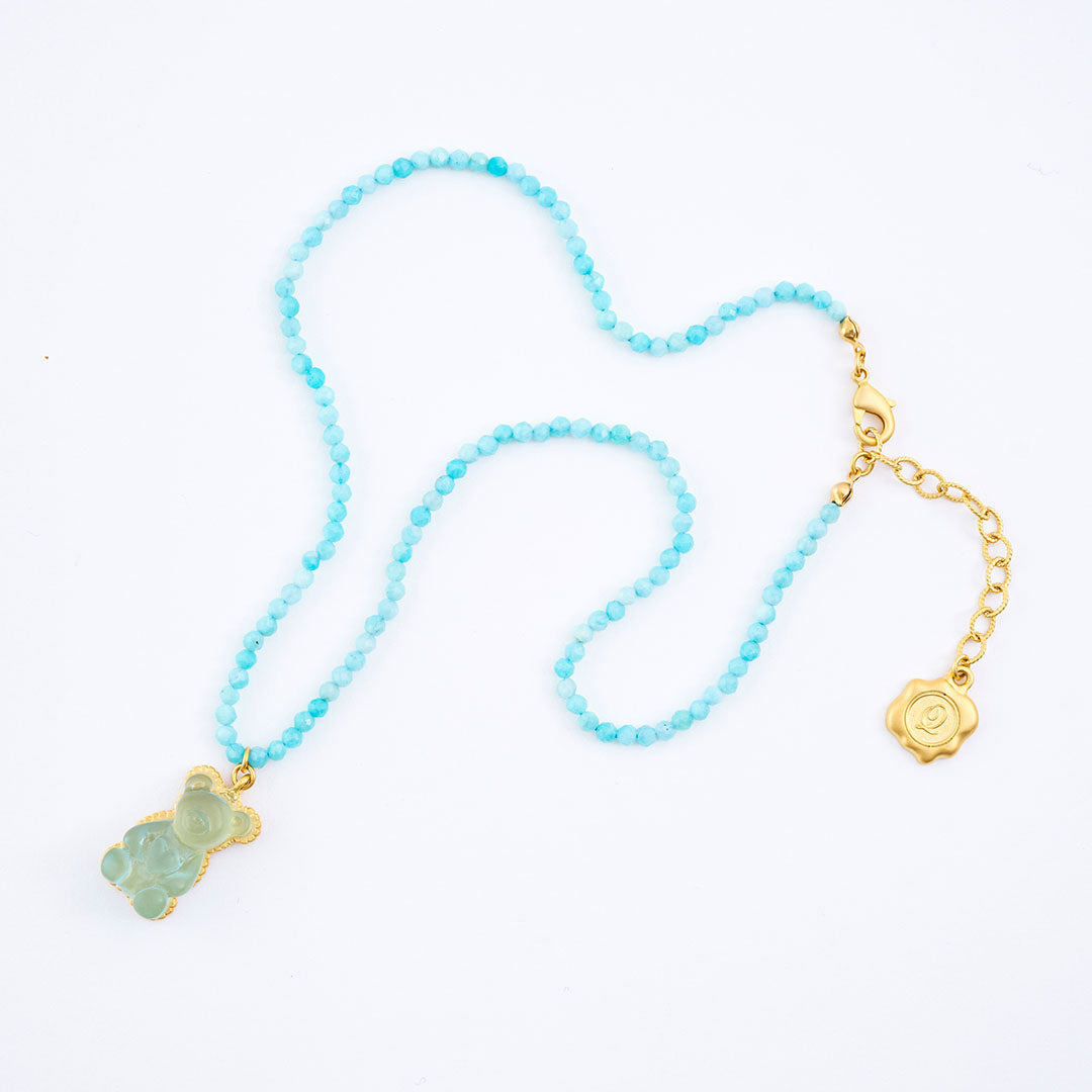 Amazonite Teddy Bear Hard Gummy Necklace (Soda)【Japan Jewelry】