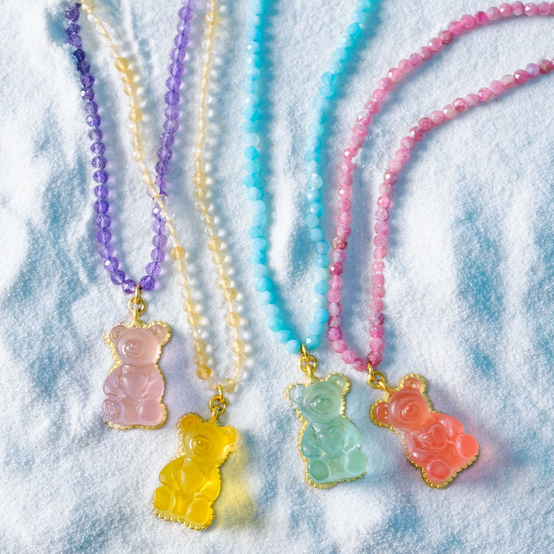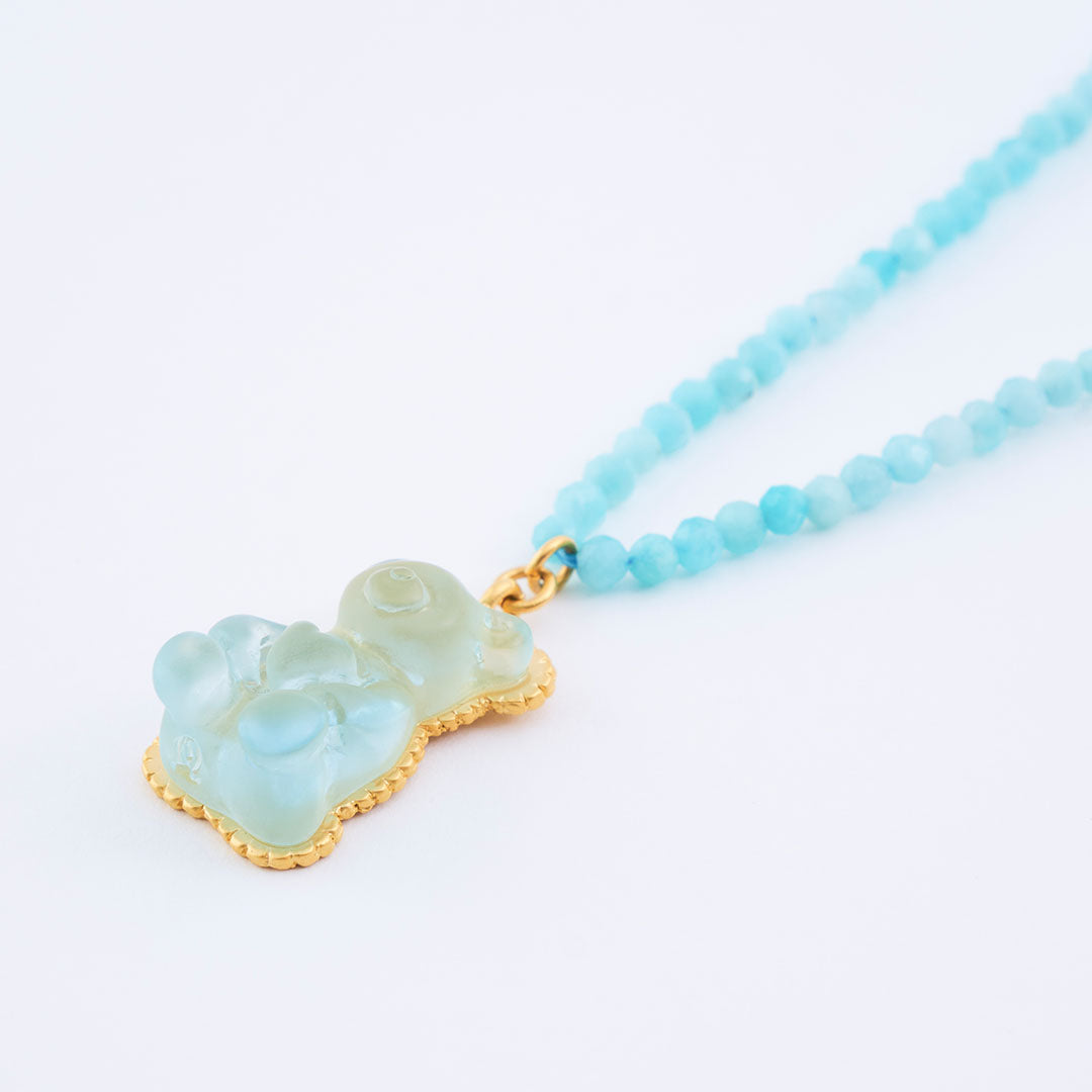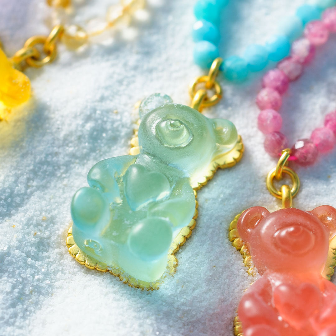 Amazonite Teddy Bear Hard Gummy Necklace (Soda)【Japan Jewelry】