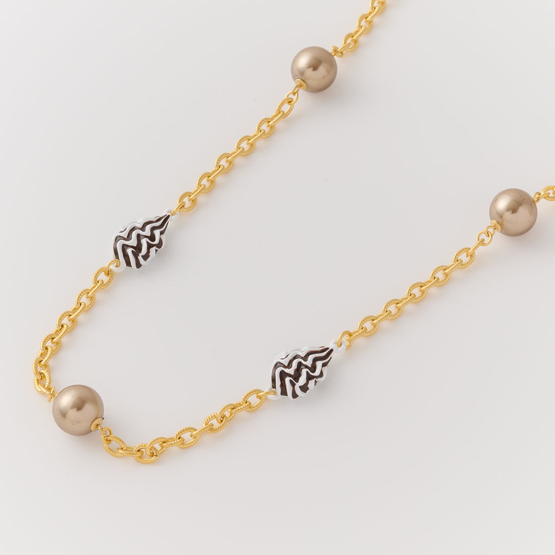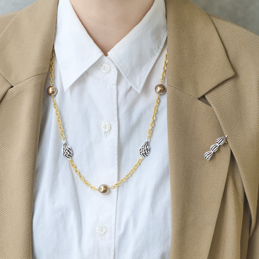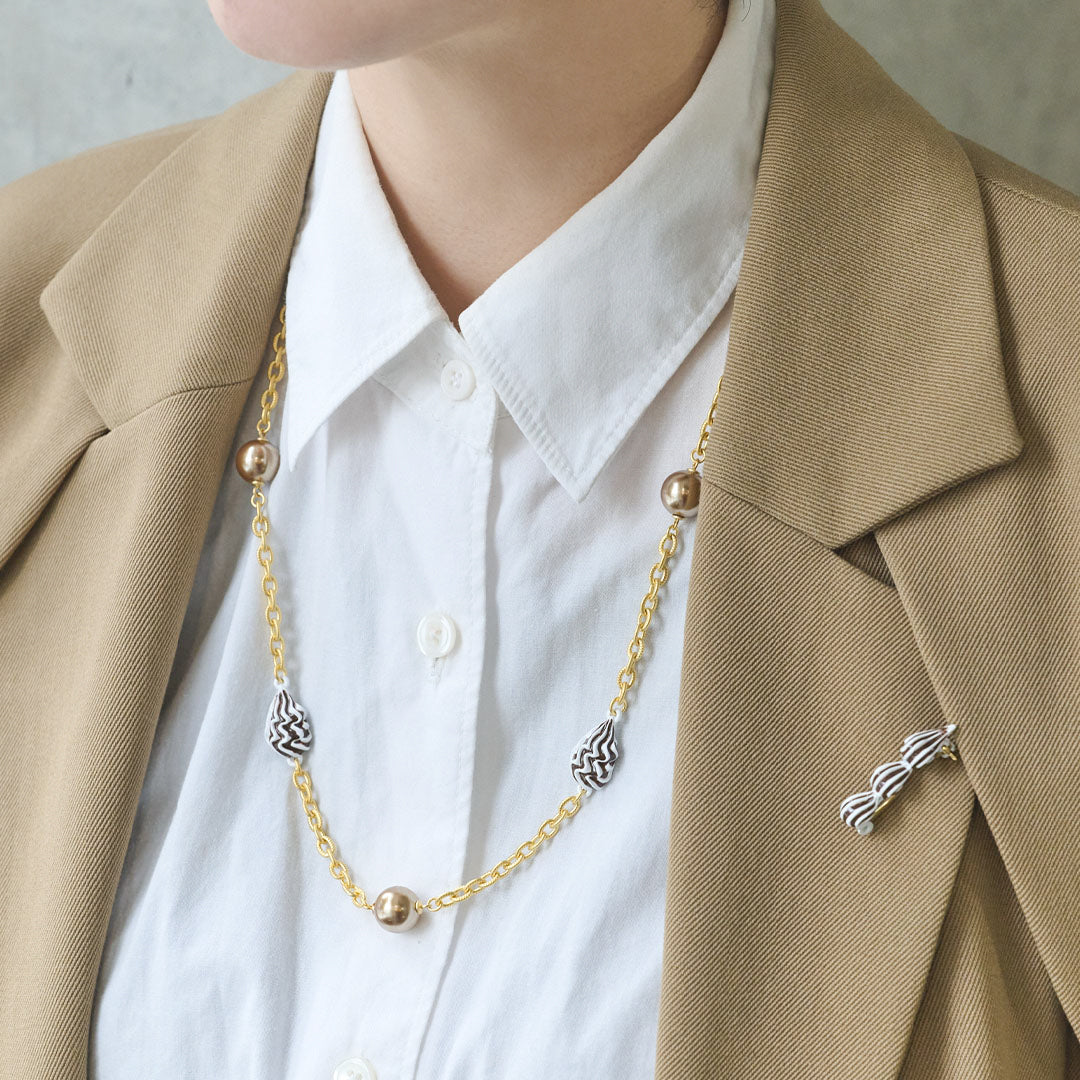 This necklace combines the gloss of large, lustrous pearls with the refined beauty of whipped cream, crafted into a sophisticated design. Rich, drizzling chocolate sauce crafted with care, each piece boasting its own unique texture and charm. The size makes it perfect for daily wear, embodying the grace and allure of a polished style.