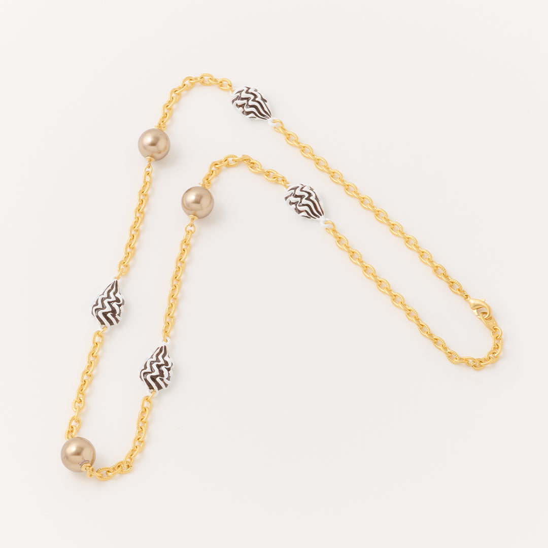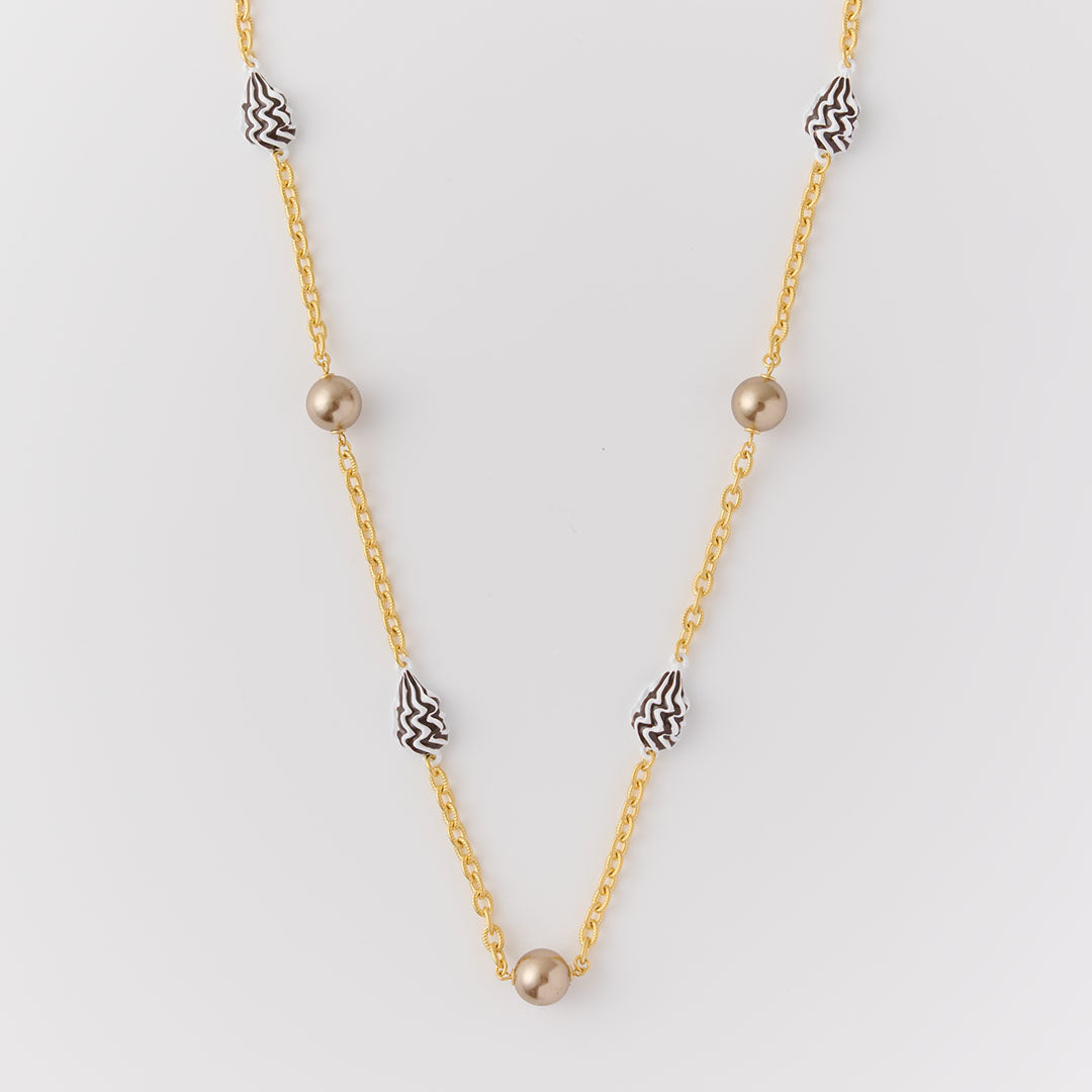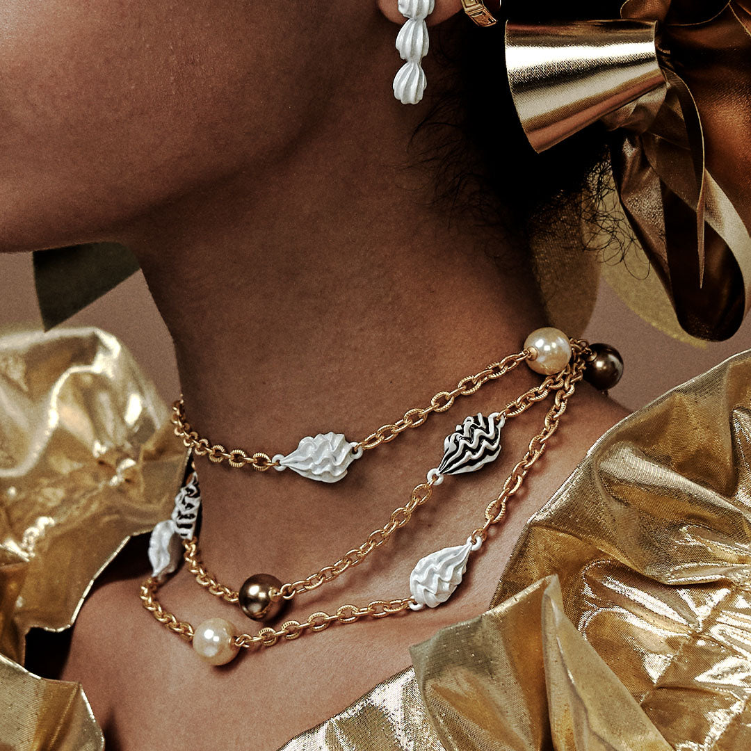 This necklace combines the gloss of large, lustrous pearls with the refined beauty of whipped cream, crafted into a sophisticated design. Rich, drizzling chocolate sauce crafted with care, each piece boasting its own unique texture and charm. The size makes it perfect for daily wear, embodying the grace and allure of a polished style.