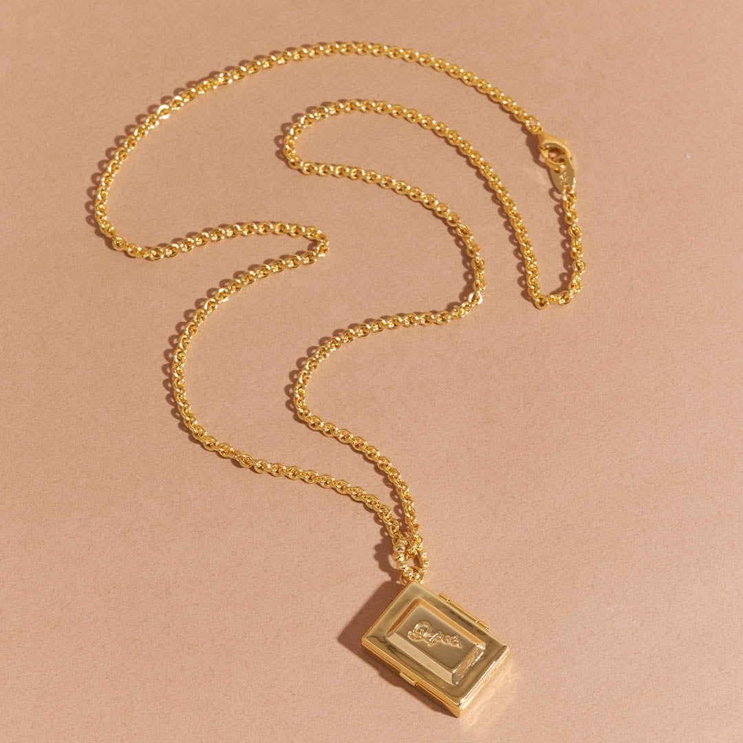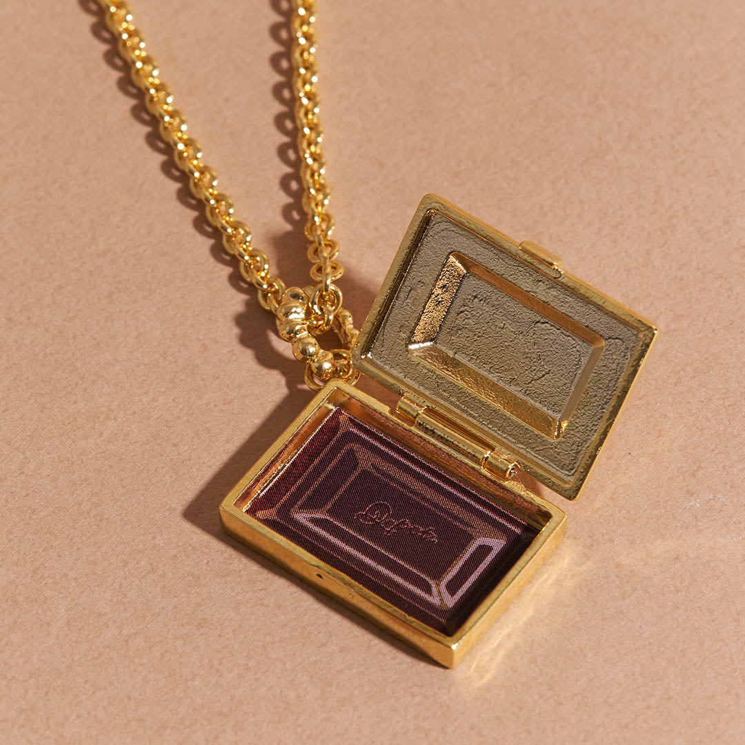 Chocolate Tablet Locket Necklace (Gold)【Japan Jewelry】