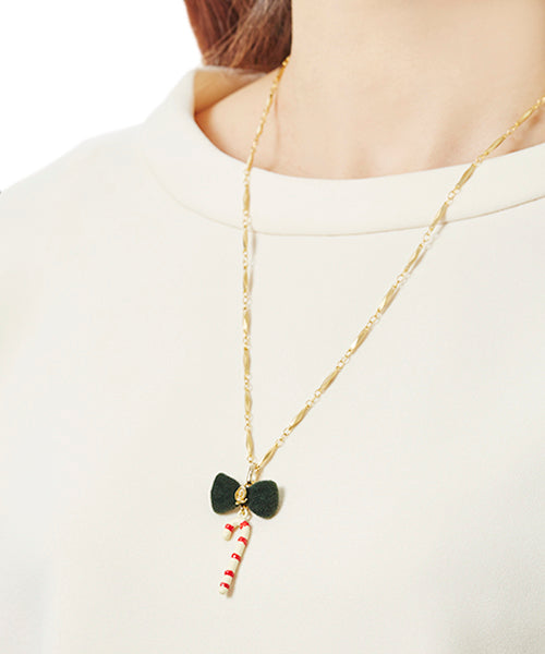 Christmas Small Candy Cane Necklace【Japan Jewelry】